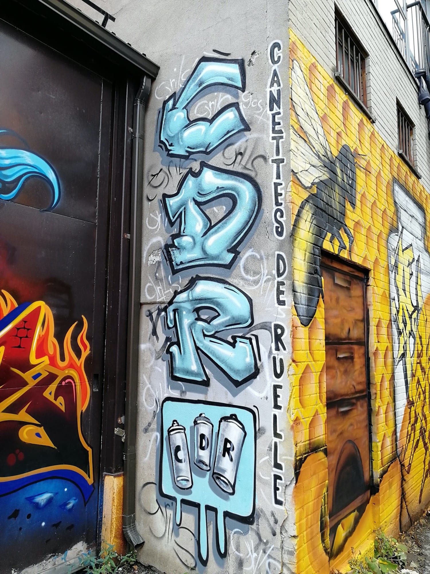 L’oeuvre est de type graffiti. Vous pouvez l’admirer dans la ville de Montréal en Canada et plus précisément ici : 2980 Rue Masson, Montréal, QC H1Y 1X5, Canada.