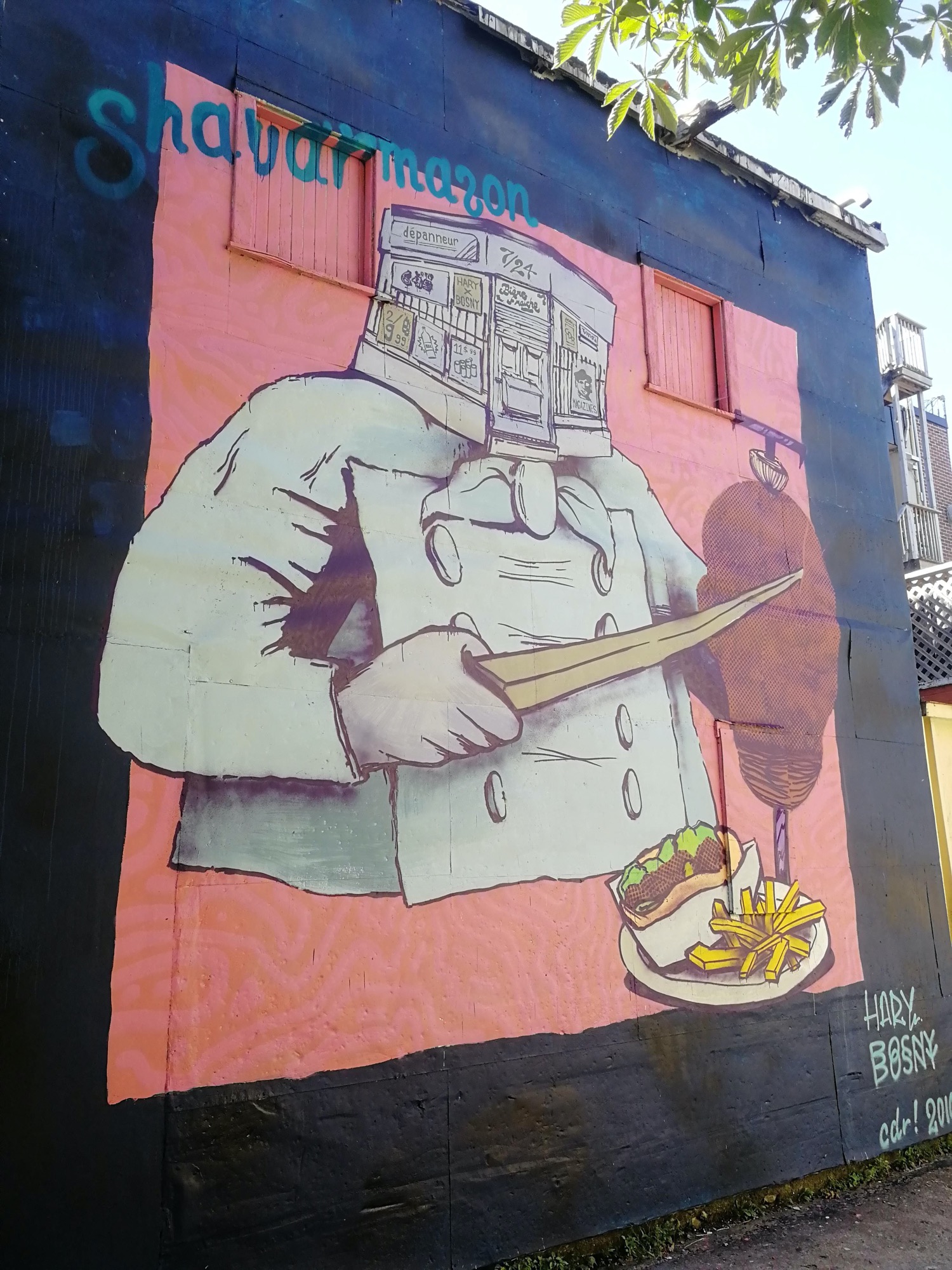L’oeuvre est de type graffiti. Vous pouvez l’admirer dans la ville de Montréal en Canada et plus précisément ici : 5169 6e Avenue, Montréal, QC H1Y 2P5, Canada.