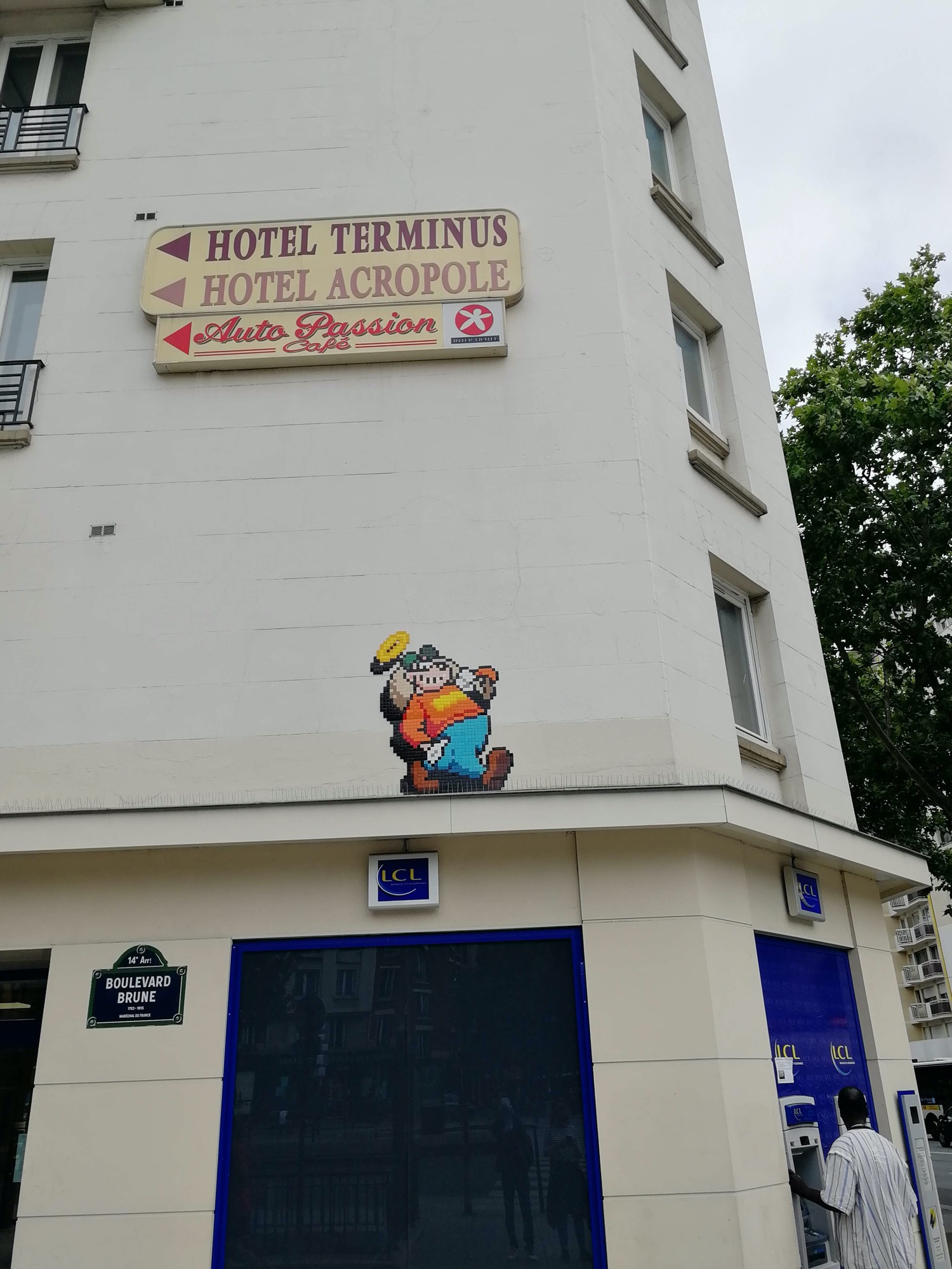 L’oeuvre Rapetou est de type mosaic. Vous pouvez l’admirer dans la ville de Paris en France et plus précisément ici : Porte d'Orléans, 75014 Paris, France.
