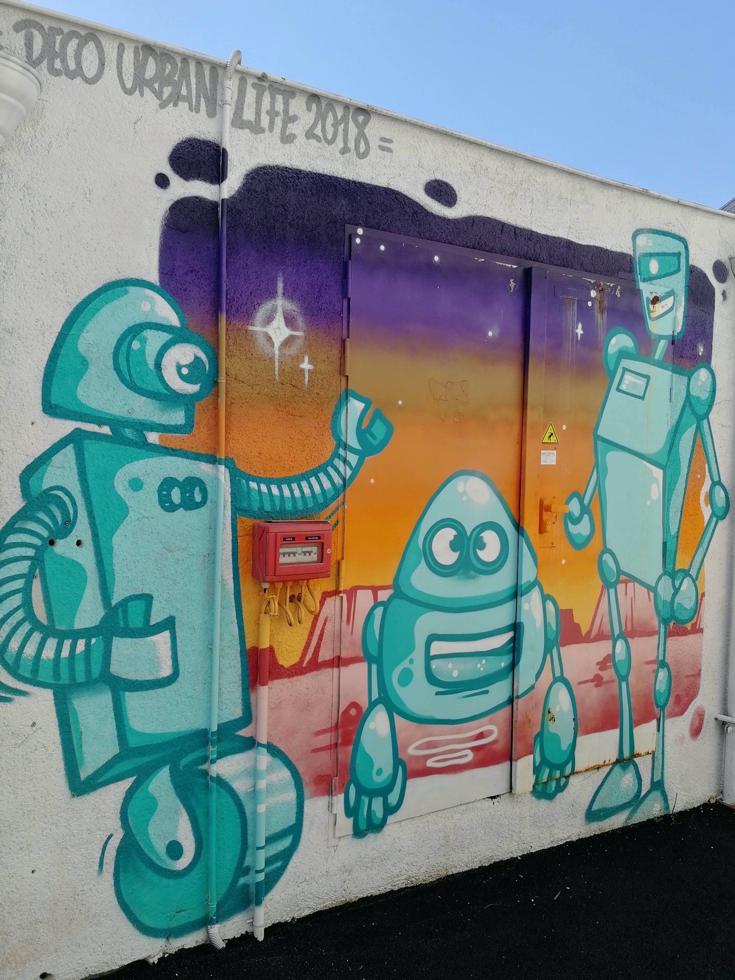 L’oeuvre est de type graffiti. Vous pouvez l’admirer dans la ville de Bourges en France et plus précisément ici : 15A Rue la Fontaine, 18000 Bourges, France.
