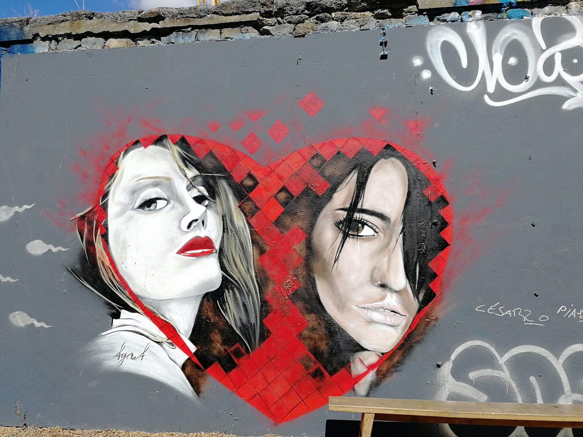 L’oeuvre est de type graffiti. Vous pouvez l’admirer dans la ville de Bordeaux en France et plus précisément ici : 87 Quai des Queyries, 33100 Bordeaux, France.