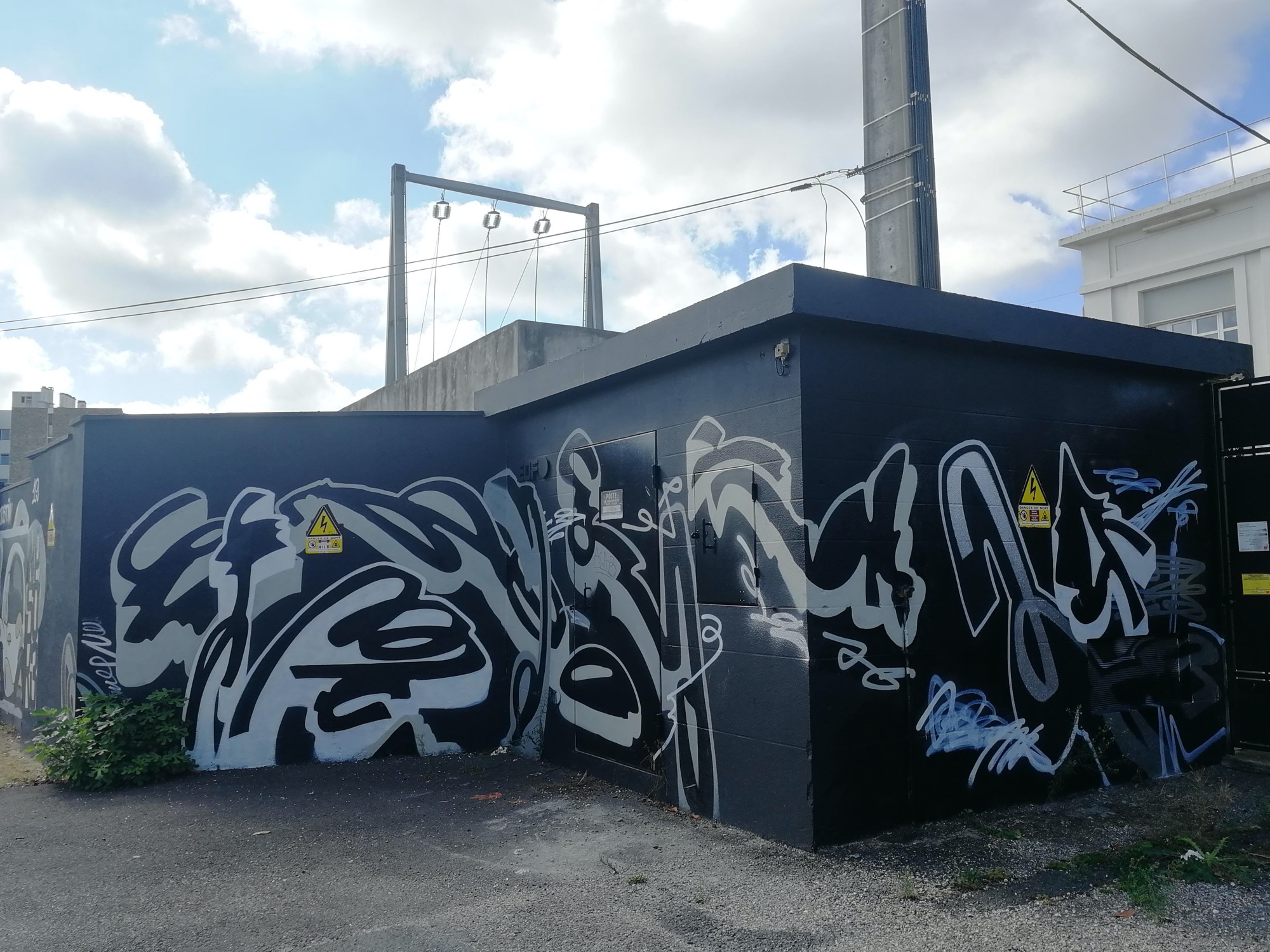 L’oeuvre est de type graffiti. Vous pouvez l’admirer dans la ville de Pessac en France et plus précisément ici : 81 Avenue des Arts, 33600 Pessac, France.