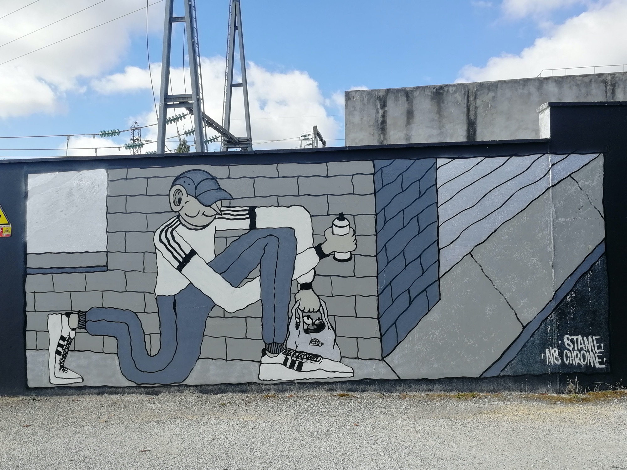 L’oeuvre est de type graffiti. Vous pouvez l’admirer dans la ville de Pessac en France et plus précisément ici : 4 Avenue des Arts, 33600 Pessac, France.