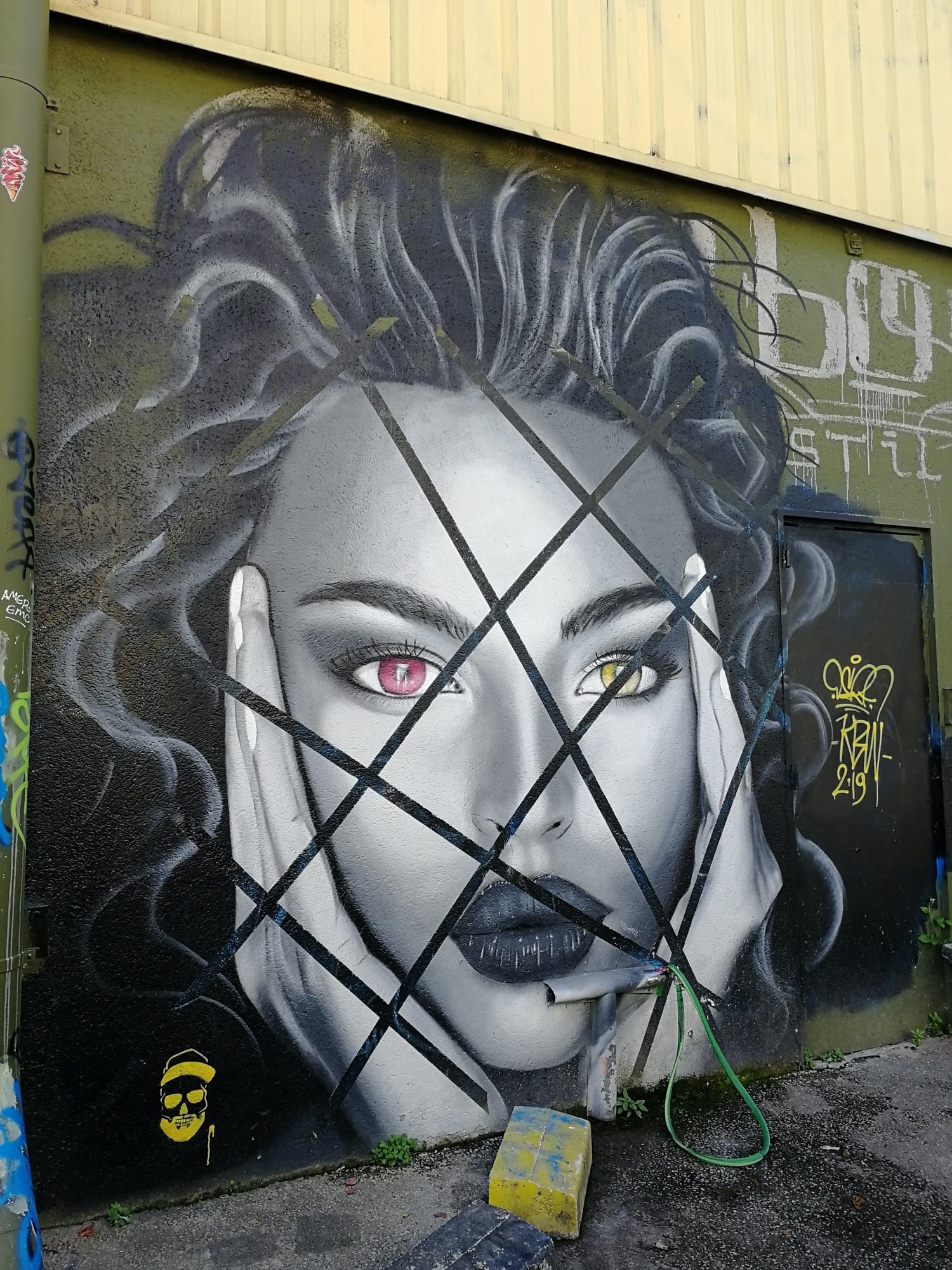 L’oeuvre est de type graffiti. Vous pouvez l’admirer dans la ville de Bordeaux en France et plus précisément ici : 87 Quai des Queyries, 33100 Bordeaux, France.