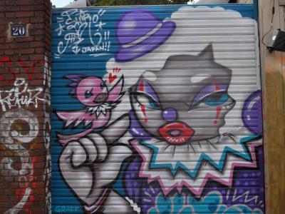 L'oeuvre est de type graffiti. Vous pouvez l'admirer dans la ville de Saint-Ouen en France et plus précisément ici : 10 Rue Jules Vallès, 93400 Saint-Ouen, France.
