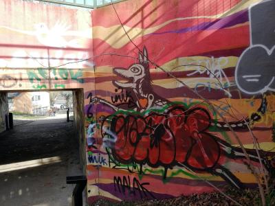 L'oeuvre est de type graffiti. Vous pouvez l'admirer dans la ville de Nantes en France et plus précisément ici : 77bis Rue du Port Boyer, 44300 Nantes, France.