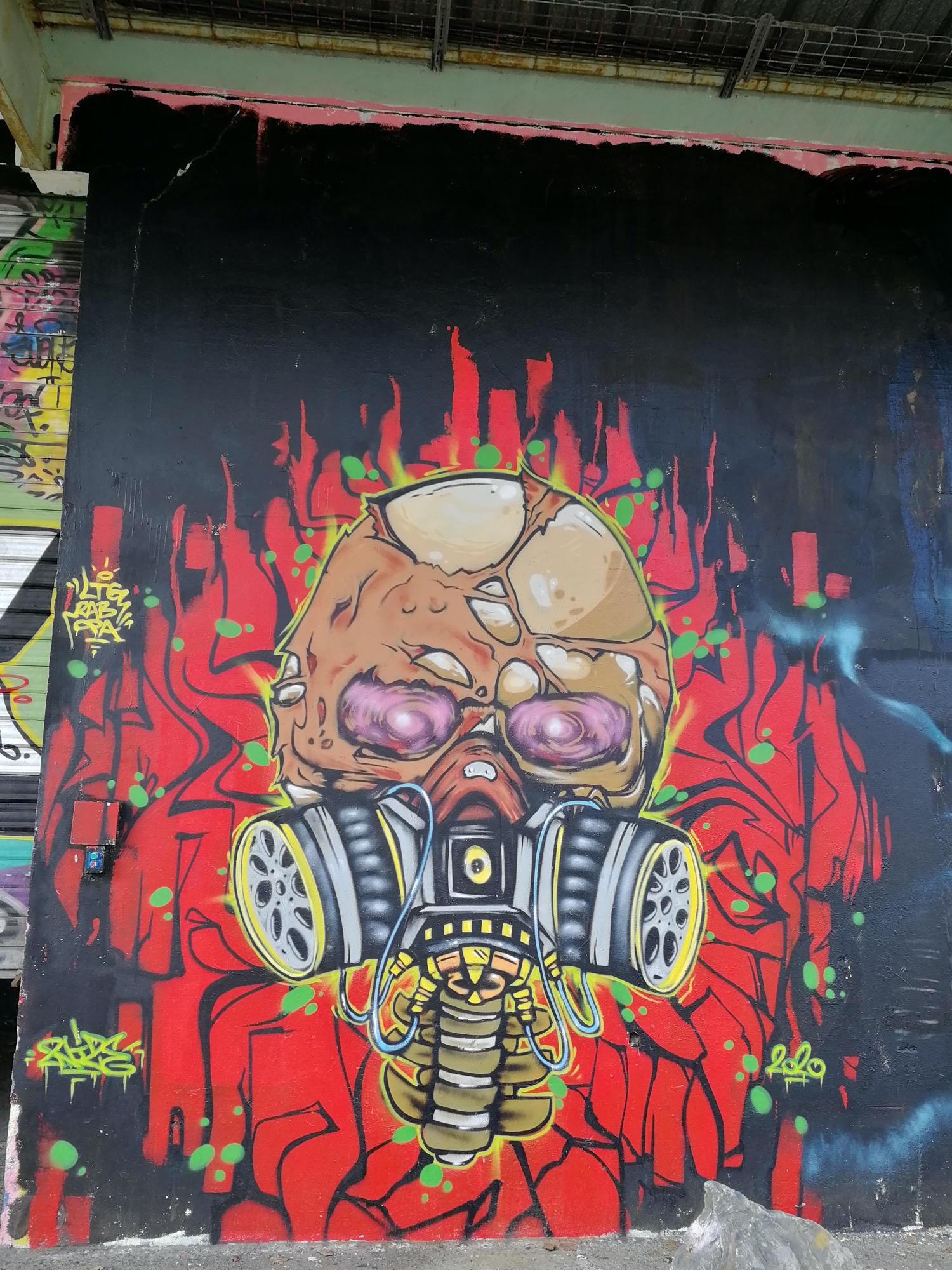 L’oeuvre est de type graffiti. Vous pouvez l’admirer dans la ville de Ploufragan en France et plus précisément ici : Rue Pierre de Coubertin, 22000 Ploufragan, France.