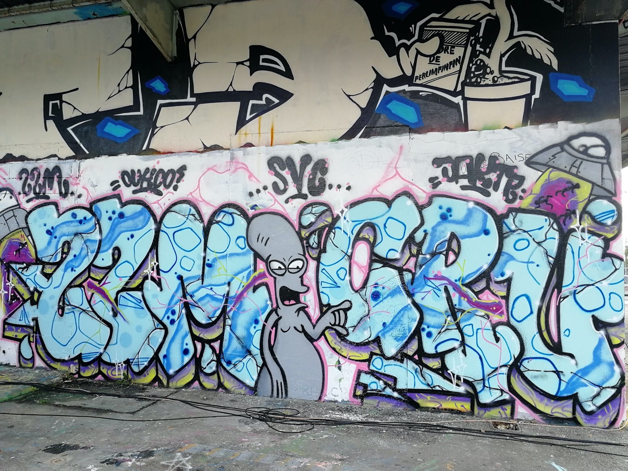 L’oeuvre est de type graffiti. Vous pouvez l’admirer dans la ville de Saint-Brieuc en France et plus précisément ici : 9 Rue de la ville Audry, 22000 Saint-Brieuc, France.