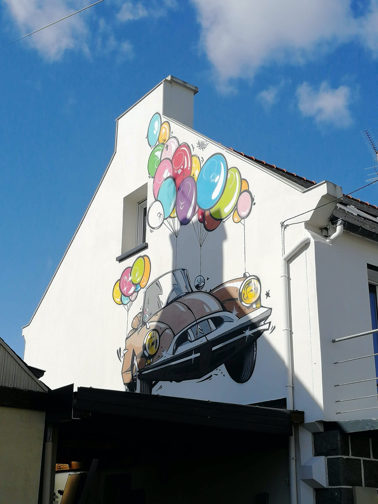 L’oeuvre Voiture ballons est de type graffiti. Vous pouvez l’admirer dans la ville de Saint-Brieuc en France et plus précisément ici : 19 Rue Gauguin, 22000 Saint-Brieuc, France.