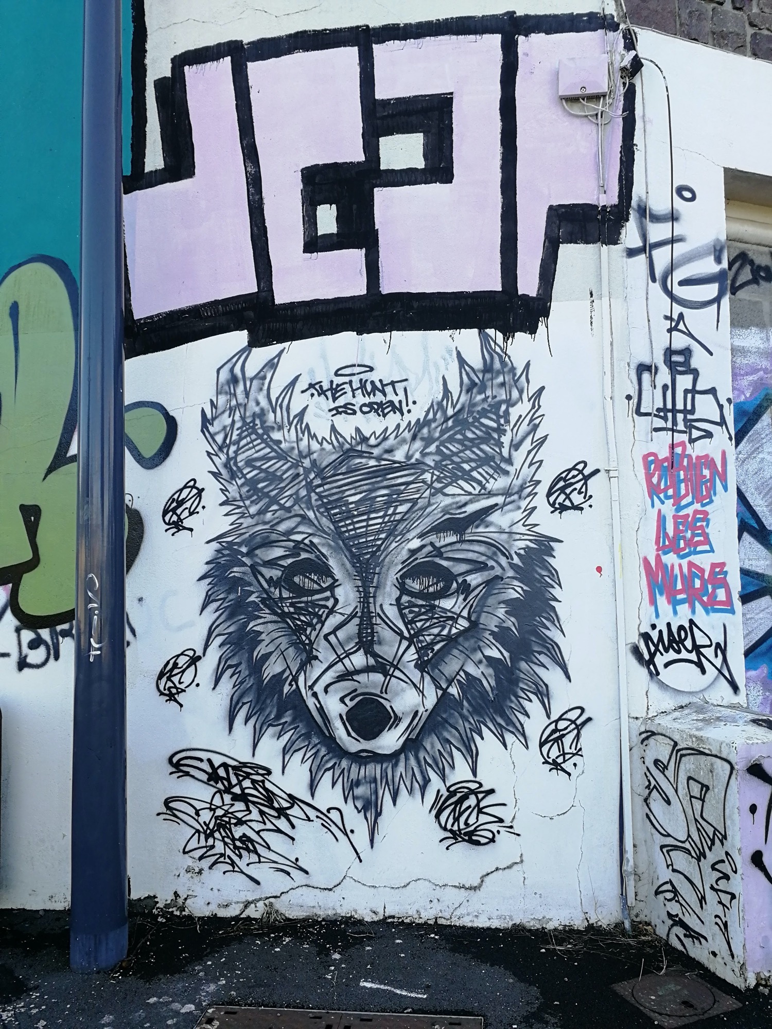 L’oeuvre est de type graffiti. Vous pouvez l’admirer dans la ville de Saint-Brieuc en France et plus précisément ici : 5bis Rue de Robien, 22000 Saint-Brieuc, France.