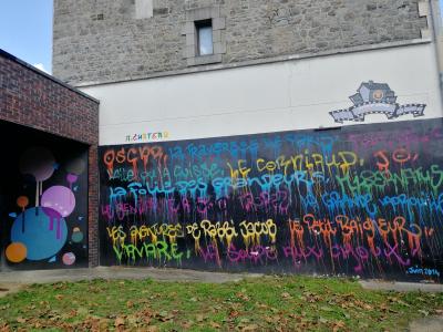 L'oeuvre Louis de funes est de type graffiti. Vous pouvez l'admirer dans la ville de Saint-Brieuc en France et plus précisément ici : 38 Boulevard Clemenceau, 22000 Saint-Brieuc, France.