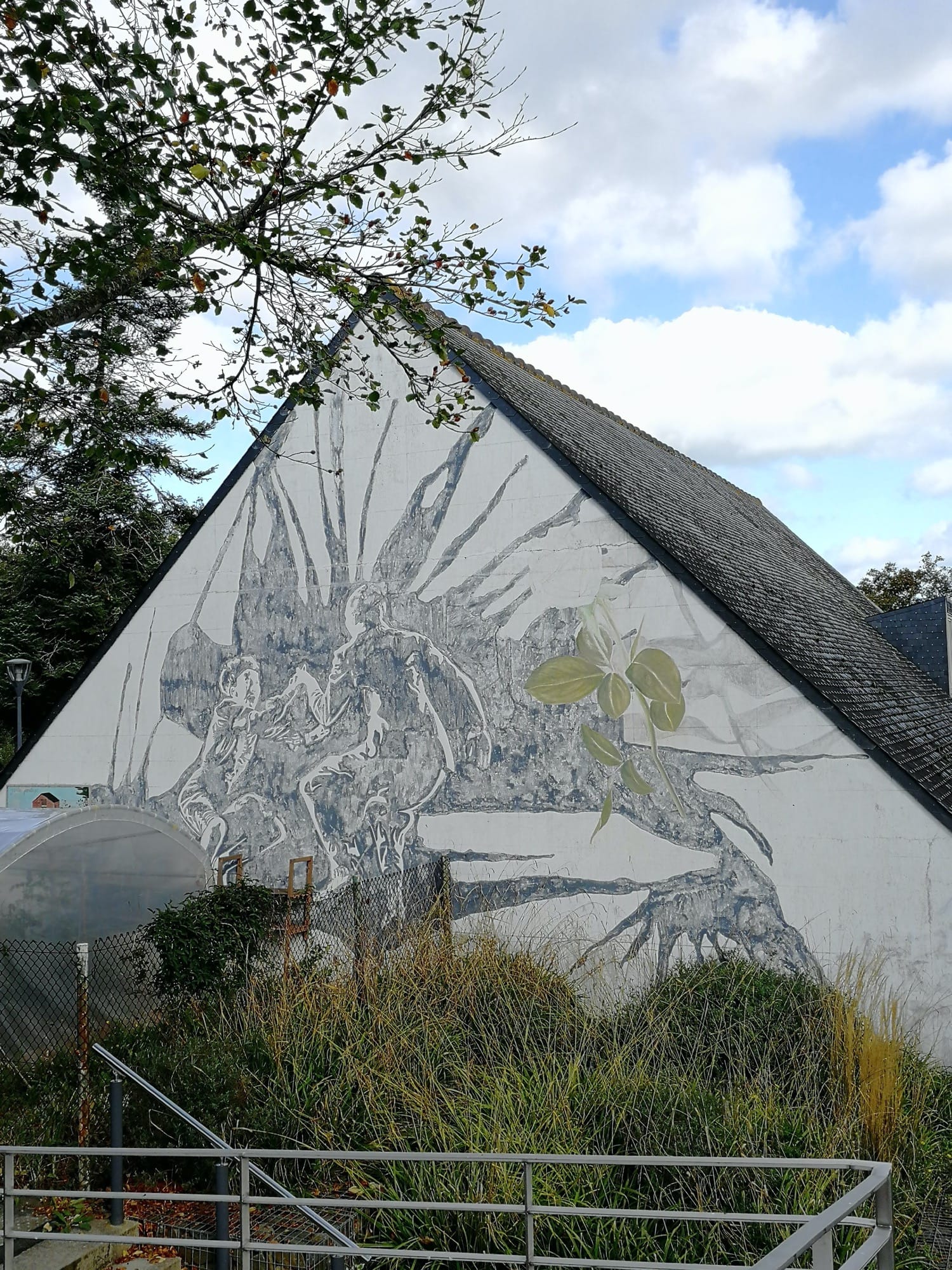 L’oeuvre est de type graffiti. Vous pouvez l’admirer dans la ville de Saint-Brieuc en France et plus précisément ici : 1 Avenue Antoine Mazier, 22000 Saint-Brieuc, France.