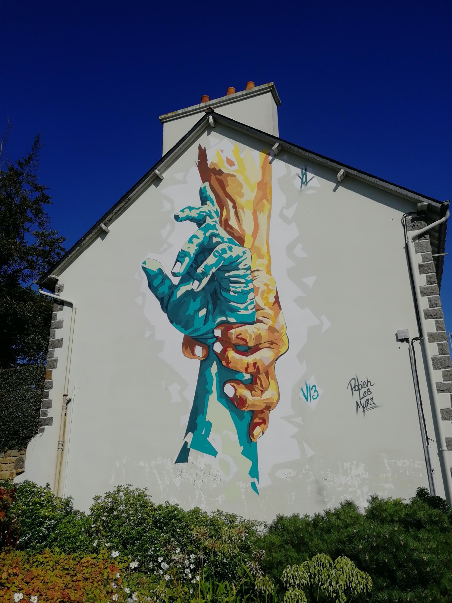 L’oeuvre est de type graffiti. Vous pouvez l’admirer dans la ville de Saint-Brieuc en France et plus précisément ici : 49 Rue Abbé Garnier, 22000 Saint-Brieuc, France.