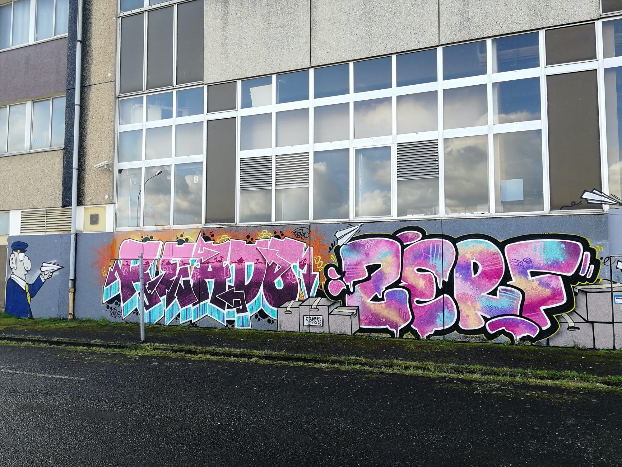 L’oeuvre est de type graffiti. Vous pouvez l’admirer dans la ville de Ploufragan en France et plus précisément ici : 9 Rue Pierre de Coubertin, 22000 Ploufragan, France.
