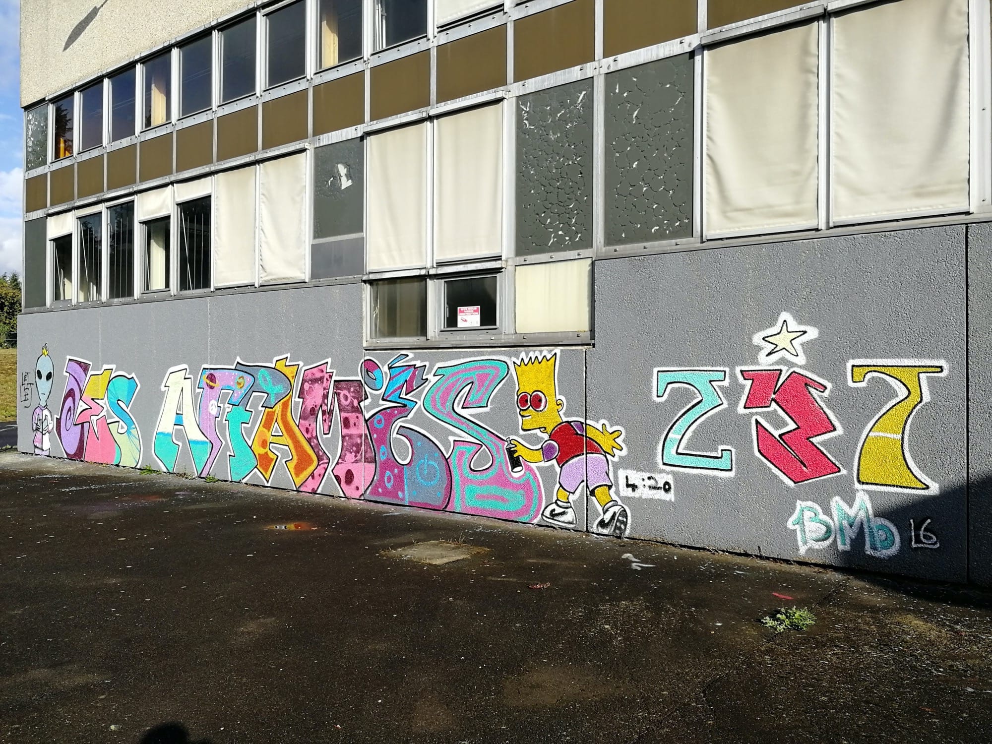 L’oeuvre est de type graffiti. Vous pouvez l’admirer dans la ville de Ploufragan en France et plus précisément ici : 2 Rue de Brezillet, 22000 Ploufragan, France.