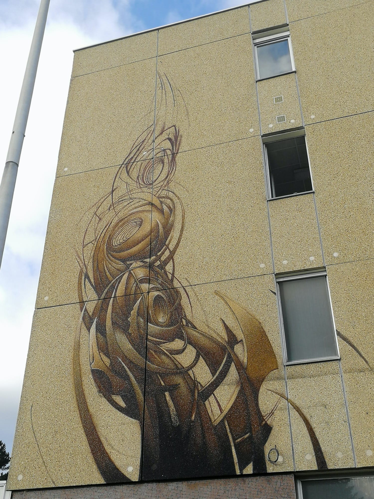 L’oeuvre est de type graffiti. Vous pouvez l’admirer dans la ville de Ploufragan en France et plus précisément ici : 2 Rue de Brezillet, 22000 Ploufragan, France.