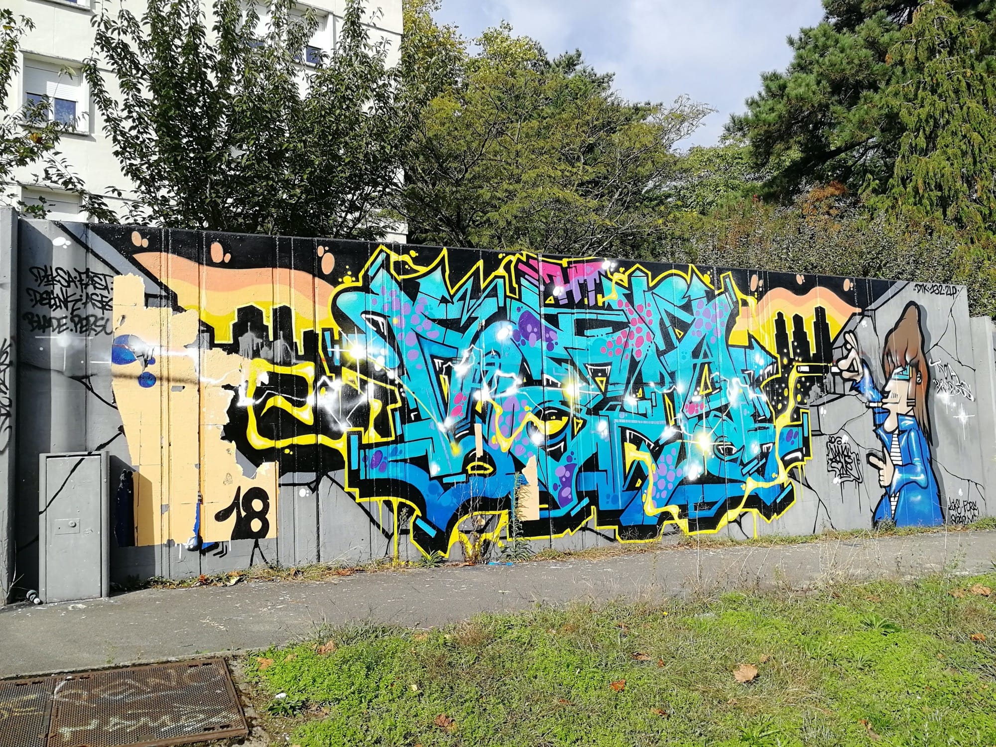 L’oeuvre est de type graffiti. Vous pouvez l’admirer dans la ville de Nantes en France et plus précisément ici : 5 Boulevard Benoît Frachon, 44100 Nantes, France.