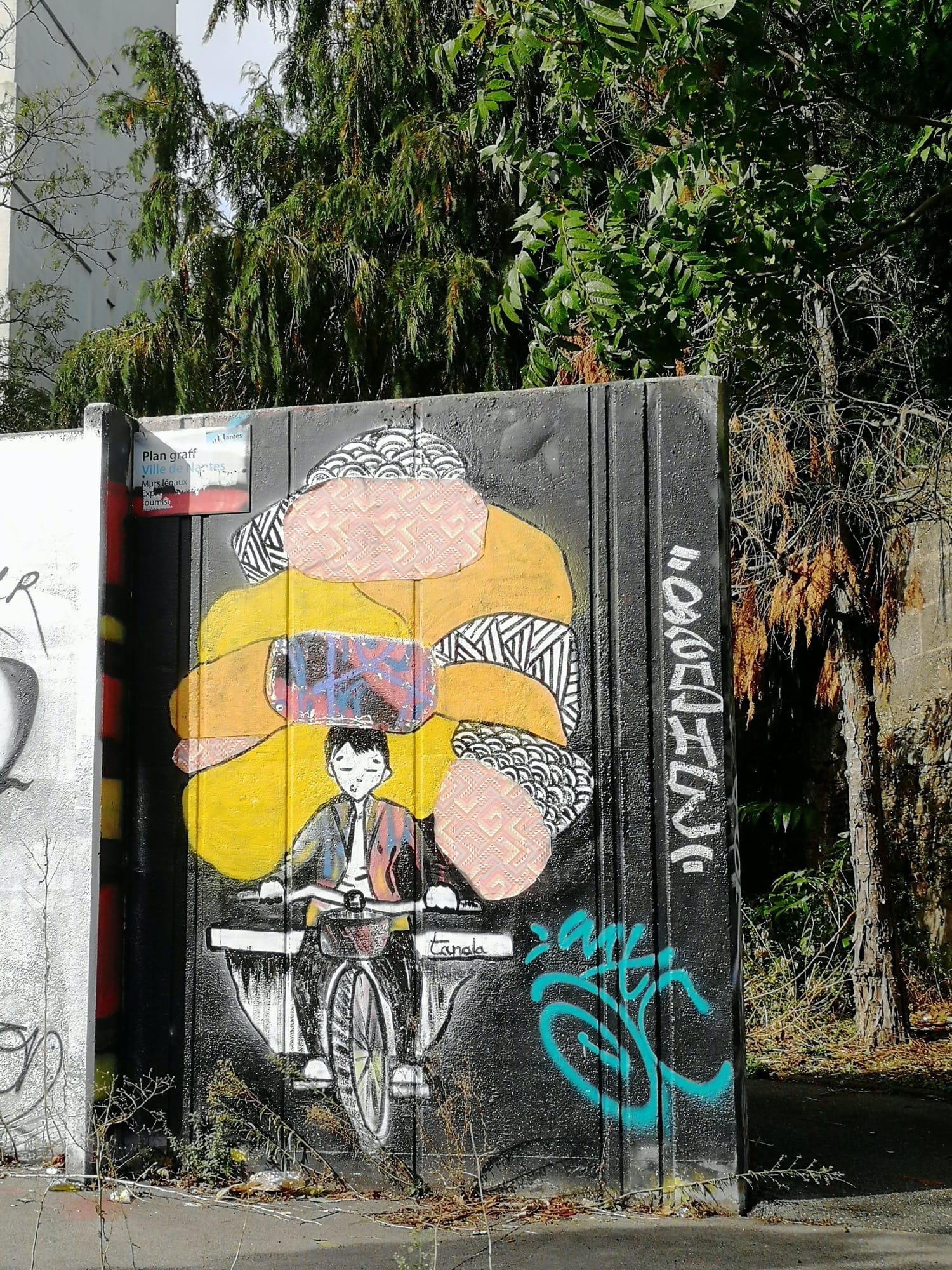 L’oeuvre est de type graffiti. Vous pouvez l’admirer dans la ville de Nantes en France et plus précisément ici : 3 Boulevard Salvador Allende, 44100 Nantes, France.