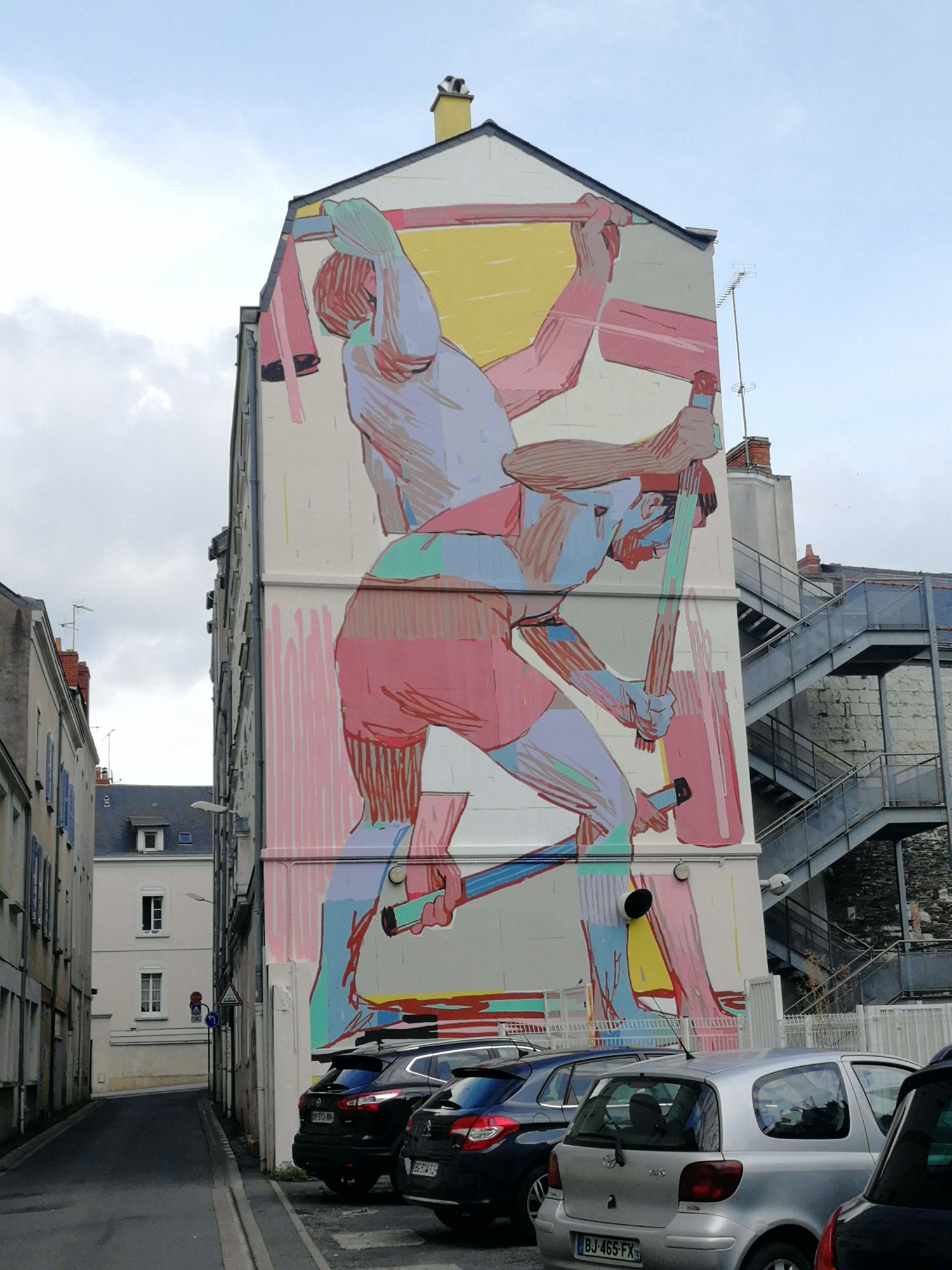 L’oeuvre est de type graffiti. Vous pouvez l’admirer dans la ville de Angers en France et plus précisément ici : 21 Rue Plantagenêt, 49100 Angers, France.