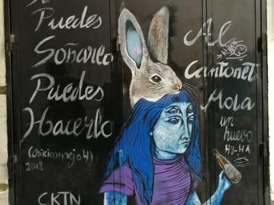 L'oeuvre est de type graffiti. Vous pouvez l'admirer dans la ville de València en Spain et plus précisément ici : 12 Plaça del Centenar de la Ploma, 46003 València, Spain.