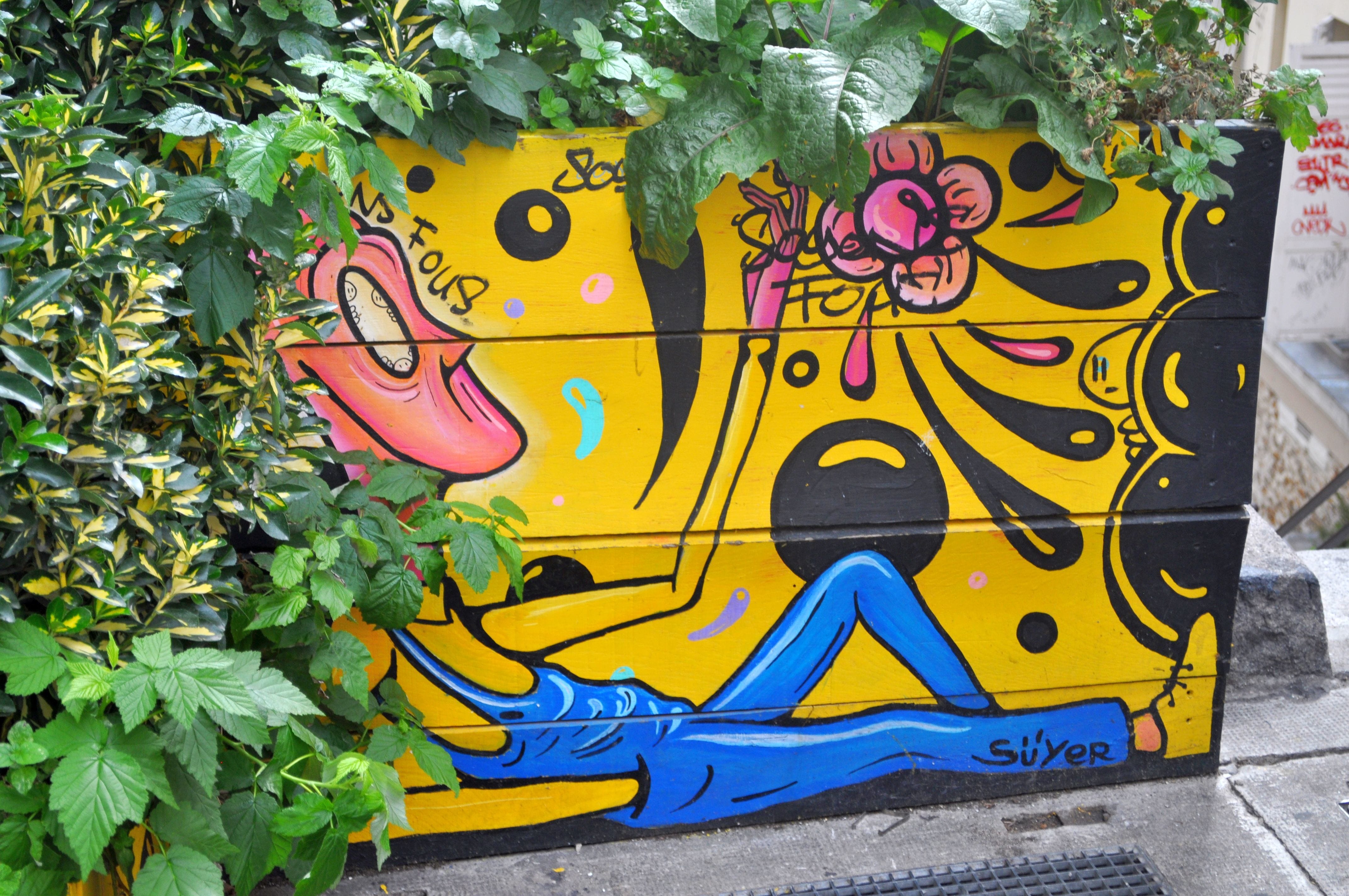 L’oeuvre est de type graffiti. Vous pouvez l’admirer dans la ville de Paris en France et plus précisément ici : 57 Rue des Trois Frères, 75018 Paris, France.