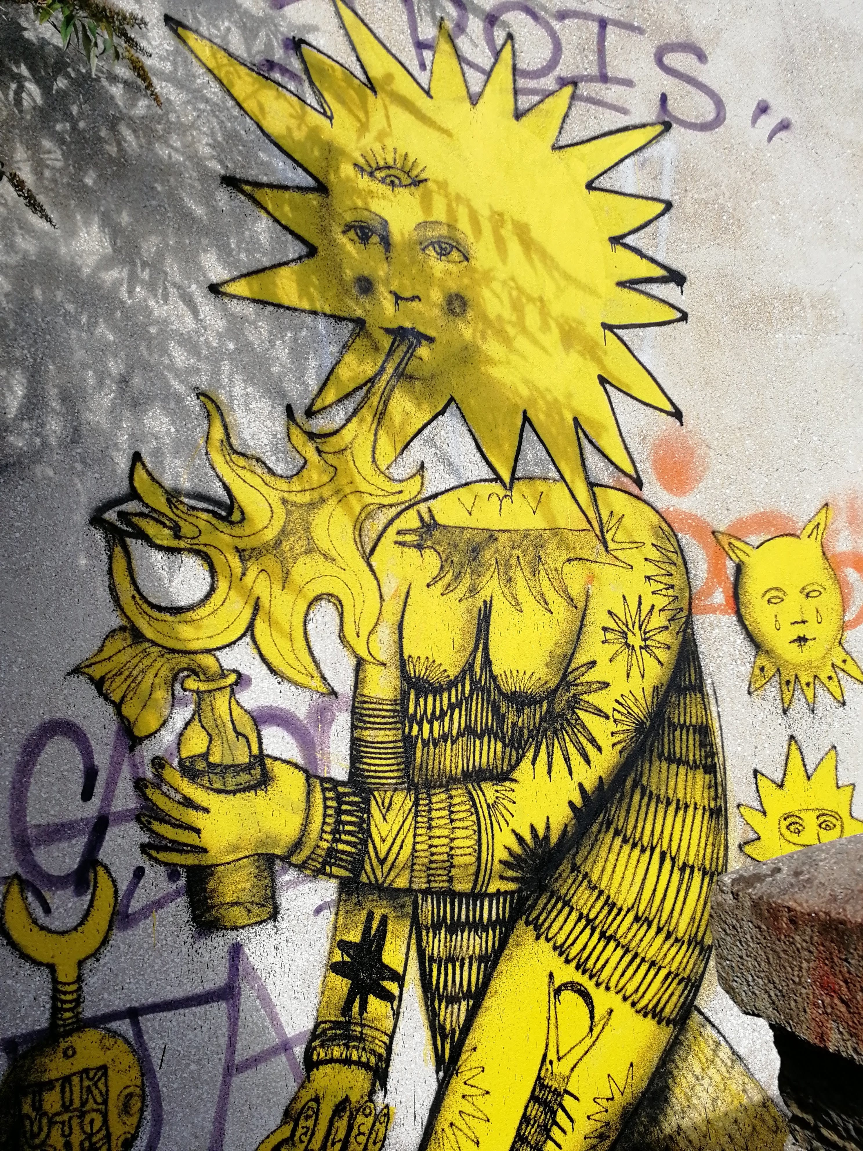 L’oeuvre est de type graffiti. Vous pouvez l’admirer dans la ville de Morlaix en France et plus précisément ici : 17 Rue du Général le Flo, 29600 Morlaix, France.