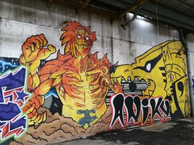 L'oeuvre est de type graffiti. Vous pouvez l'admirer dans la ville de Issé en France et plus précisément ici : 1 Rue de l'Industrie, 44520 Issé, France.