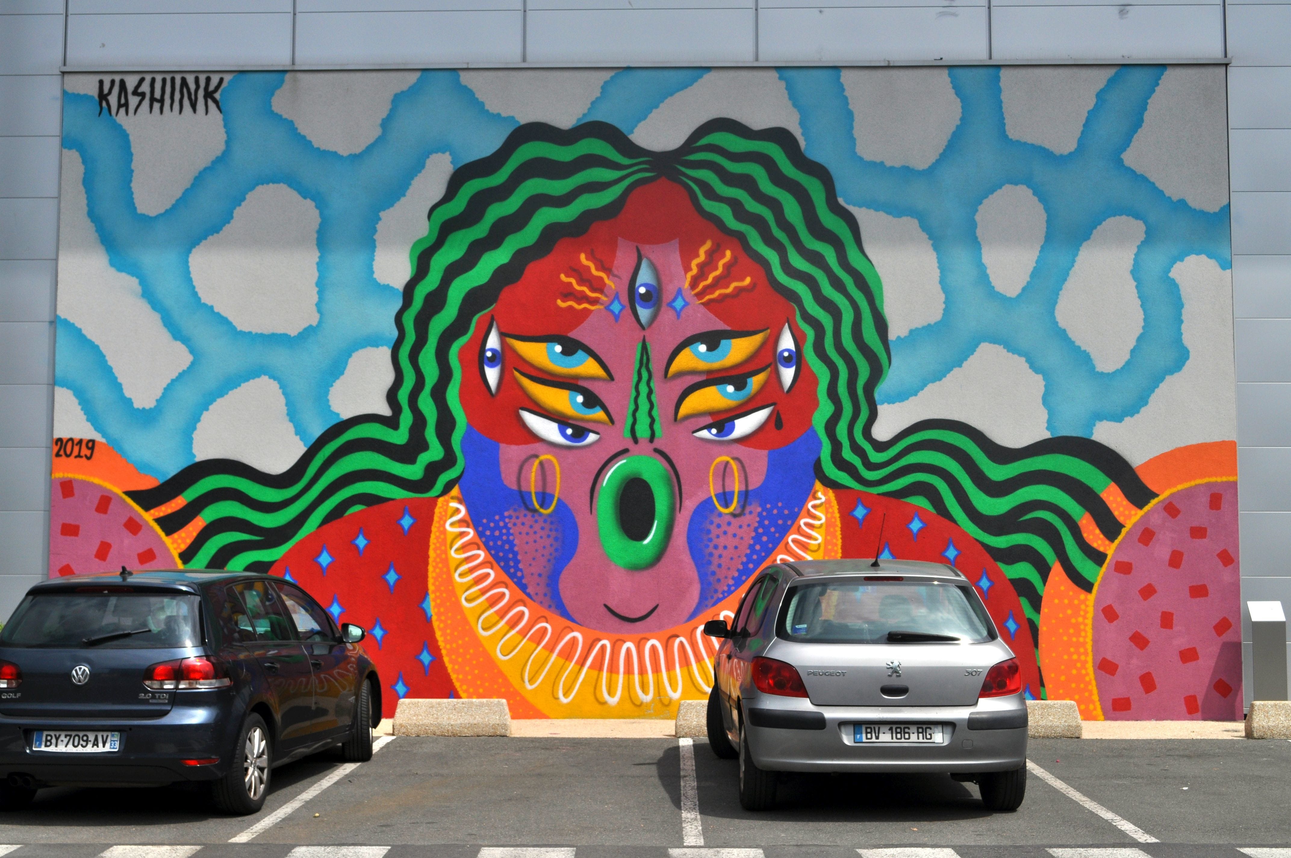 L’oeuvre est de type graffiti. Vous pouvez l’admirer dans la ville de Montévrain en France et plus précisément ici : Centre Commercial Le Clos du Chêne, 18 Route de Provins, 77600 Chanteloup-en-Brie, France.
