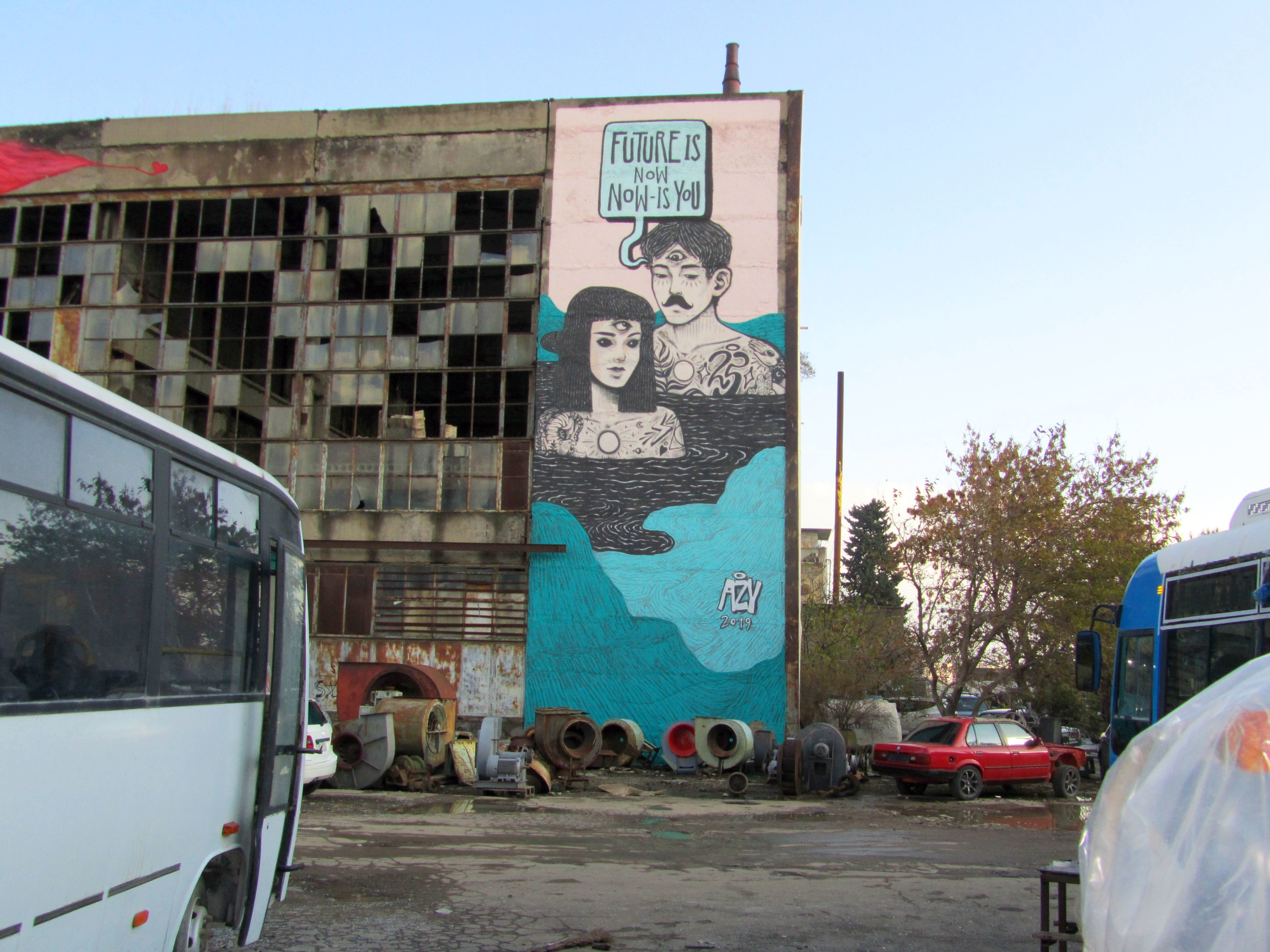 L’oeuvre est de type graffiti. Vous pouvez l’admirer dans la ville de Bakı en Azerbaijan et plus précisément ici : "Kombinat", 3 Alı Mustafayev, Bakı, Azerbaijan.