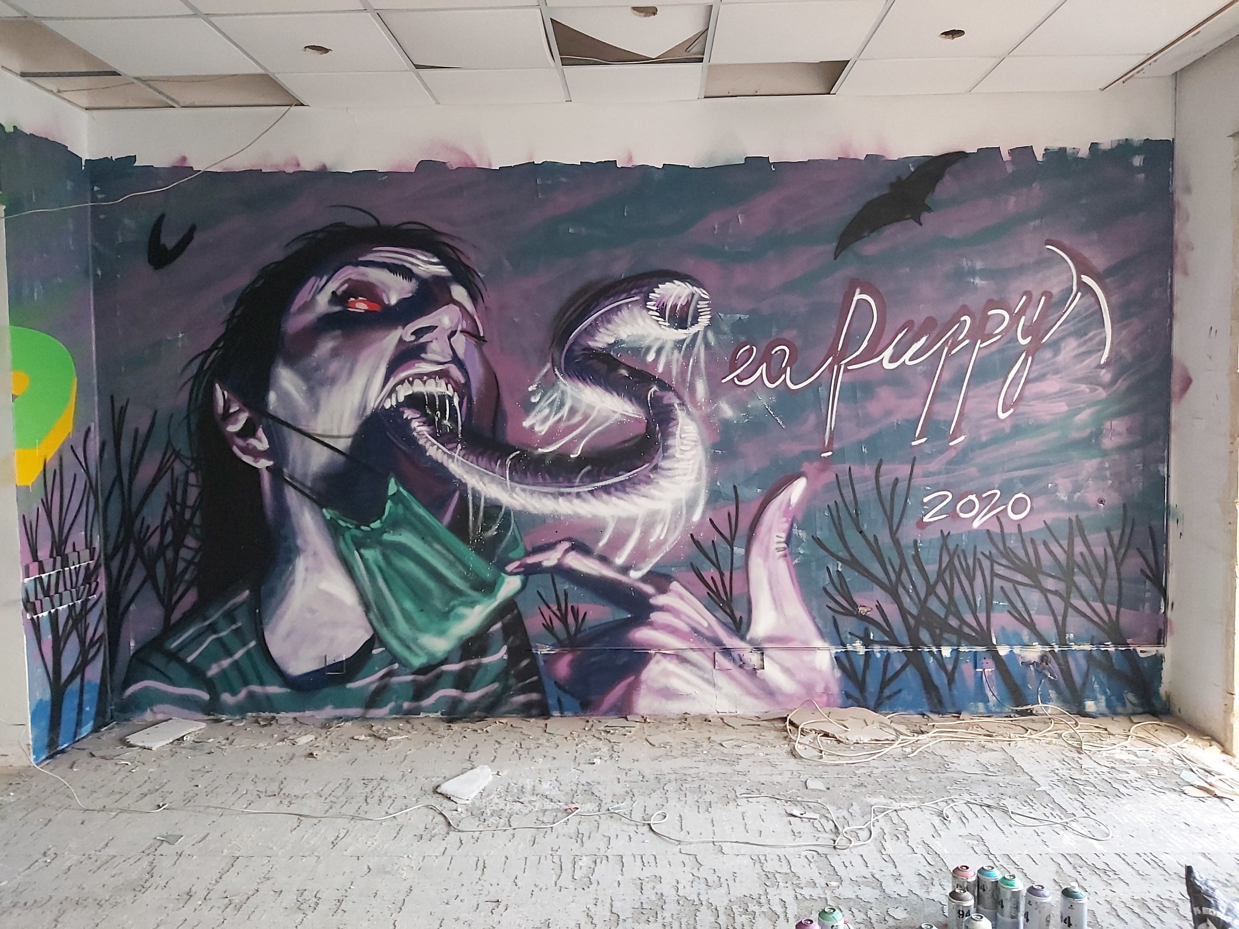 L’oeuvre Your face in 2021 est de type graffiti. Vous pouvez l’admirer dans la ville de Sliema en Malta et plus précisément ici : Hotel graveyard.