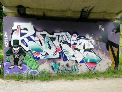 L'oeuvre est de type graffiti. Vous pouvez l'admirer dans la ville de Rezé en France et plus précisément ici : Pont des boutonnières, Pont des Bourdonnières, 44400 Rezé, France.