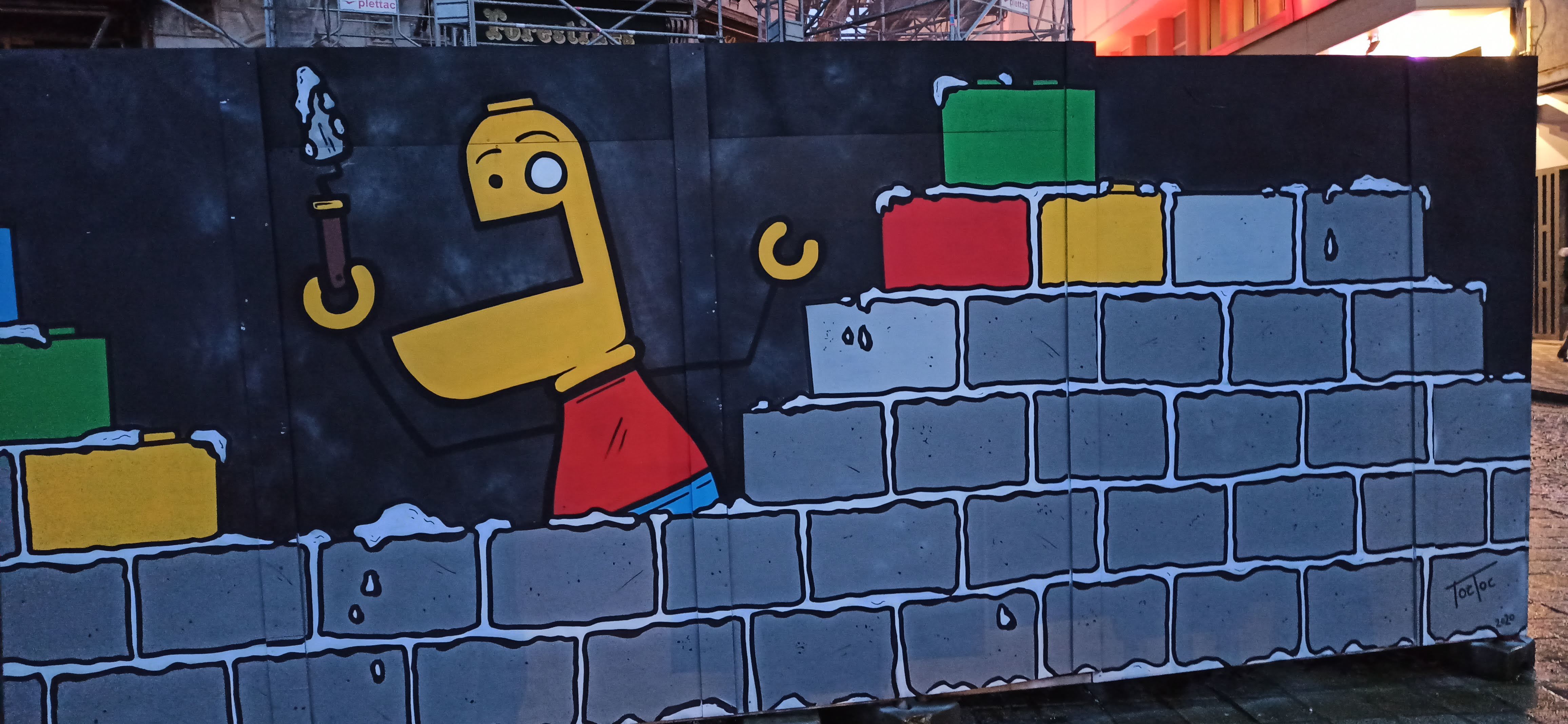 L’oeuvre est de type graffiti. Vous pouvez l’admirer dans la ville de Bourges en France et plus précisément ici : 2 Rue des Beaux Arts, 18000 Bourges, France.