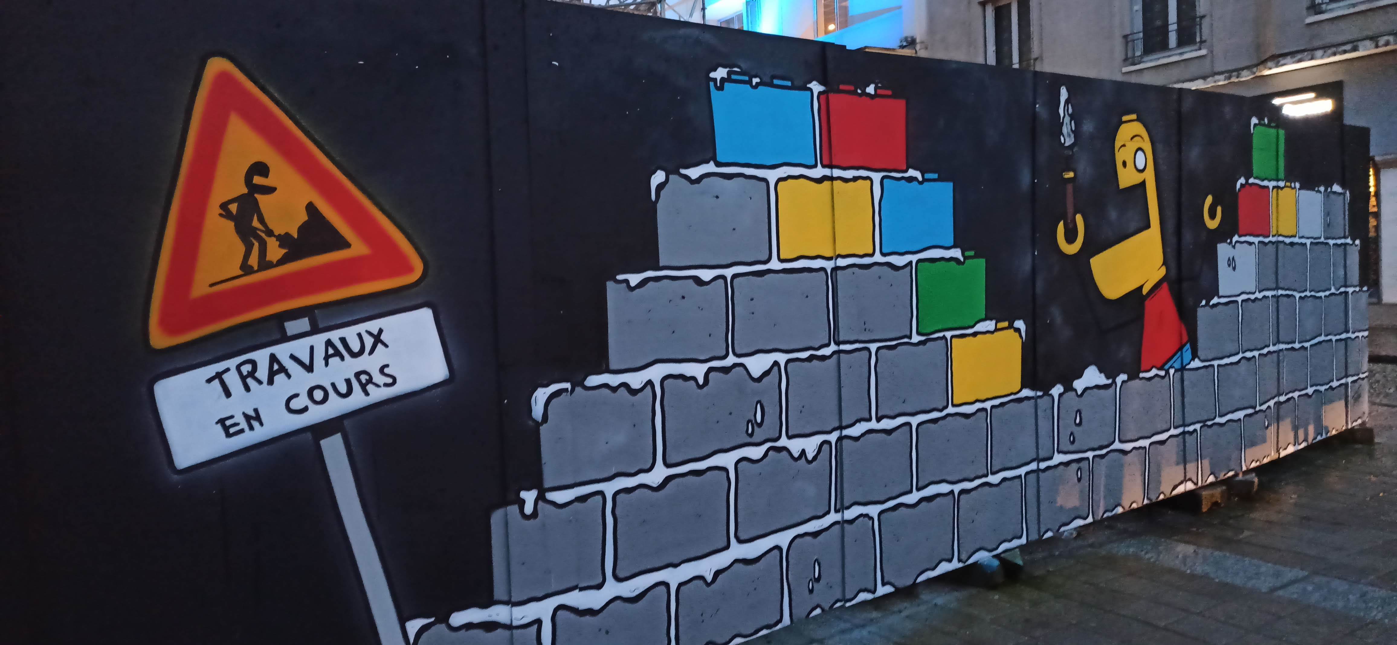 L’oeuvre est de type graffiti. Vous pouvez l’admirer dans la ville de Bourges en France et plus précisément ici : 2 Rue des Beaux Arts, 18000 Bourges, France.