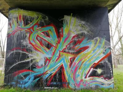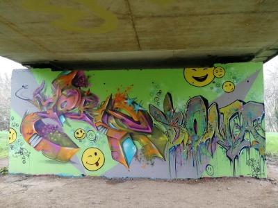 L'oeuvre est de type graffiti. Vous pouvez l'admirer dans la ville de Pays de la Loire en France et plus précisément ici : 31 Chemin Bleu, 44400 Rezé, France.
