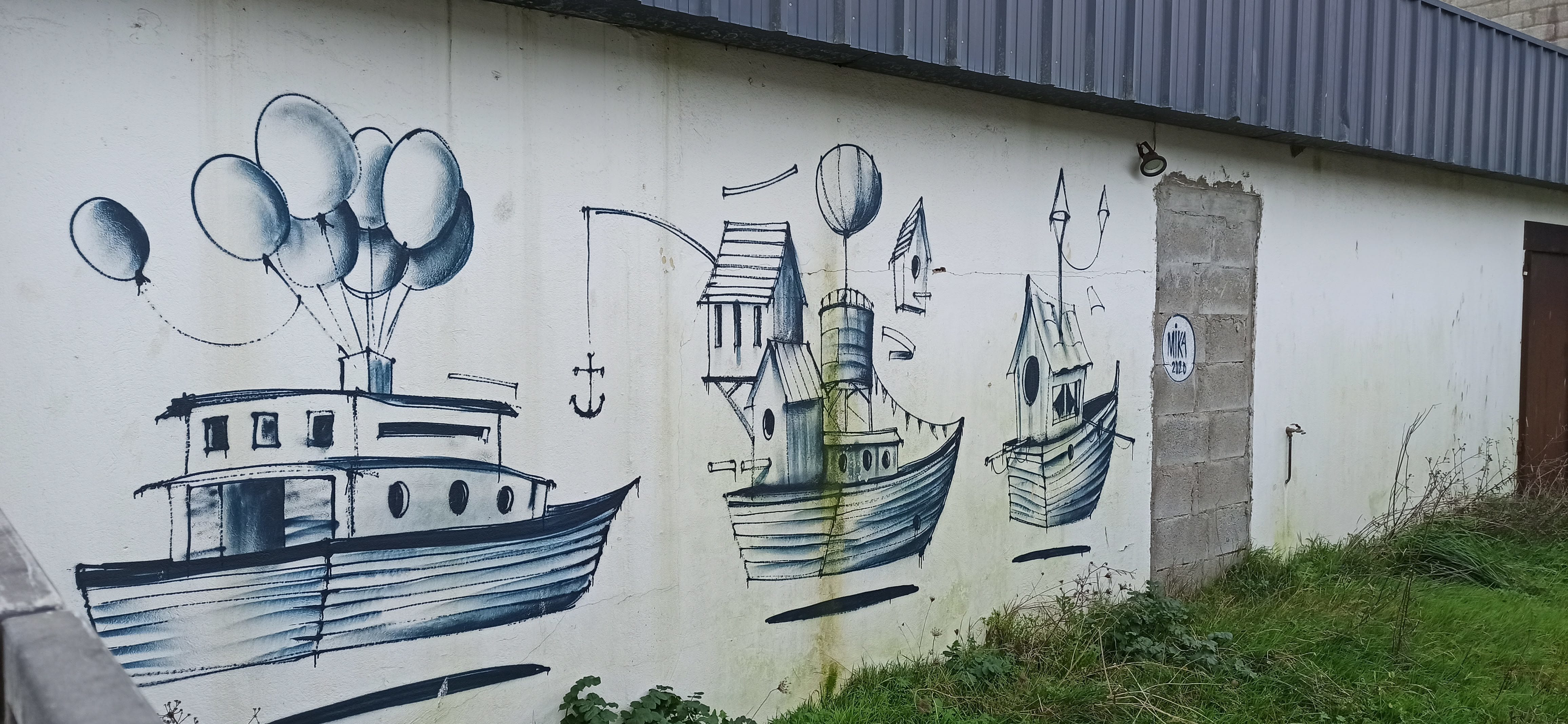 L’oeuvre est de type graffiti. Vous pouvez l’admirer dans la ville de Lorient en France et plus précisément ici : 7 Rue Emile Marcesche, 56100 Lorient, France.