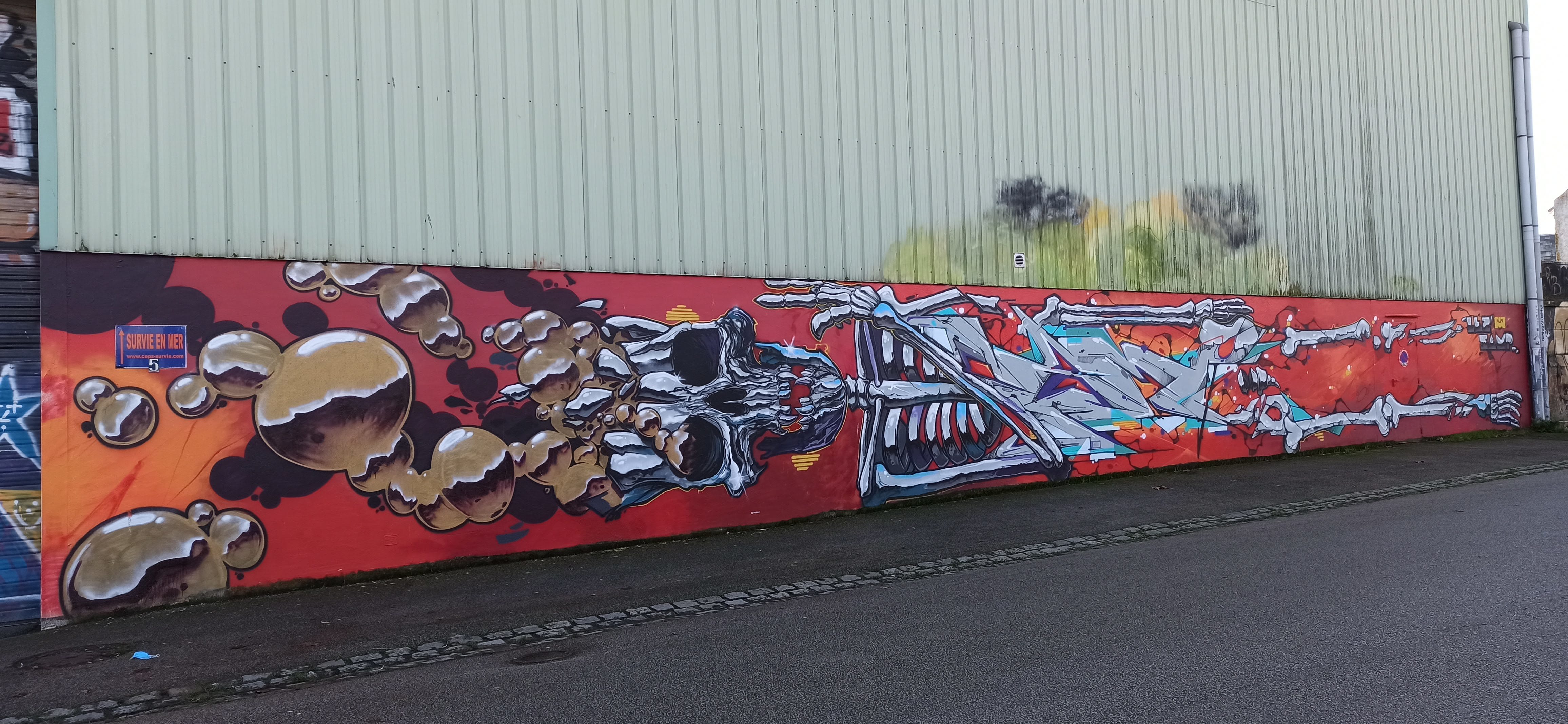 L’oeuvre est de type graffiti. Vous pouvez l’admirer dans la ville de Lorient en France et plus précisément ici : 8 Rue Florian Laporte, 56100 Lorient, France.