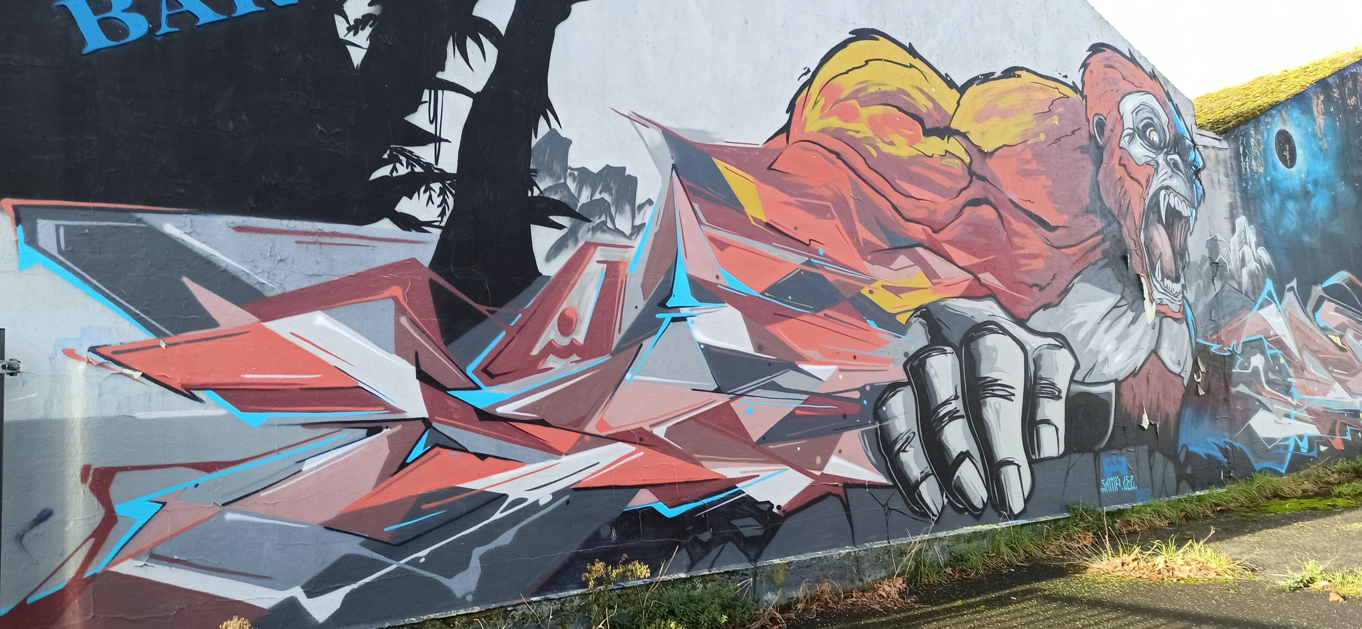 L’oeuvre est de type graffiti. Vous pouvez l’admirer dans la ville de Lorient en France et plus précisément ici : 4 Rue Florian Laporte, 56100 Lorient, France.
