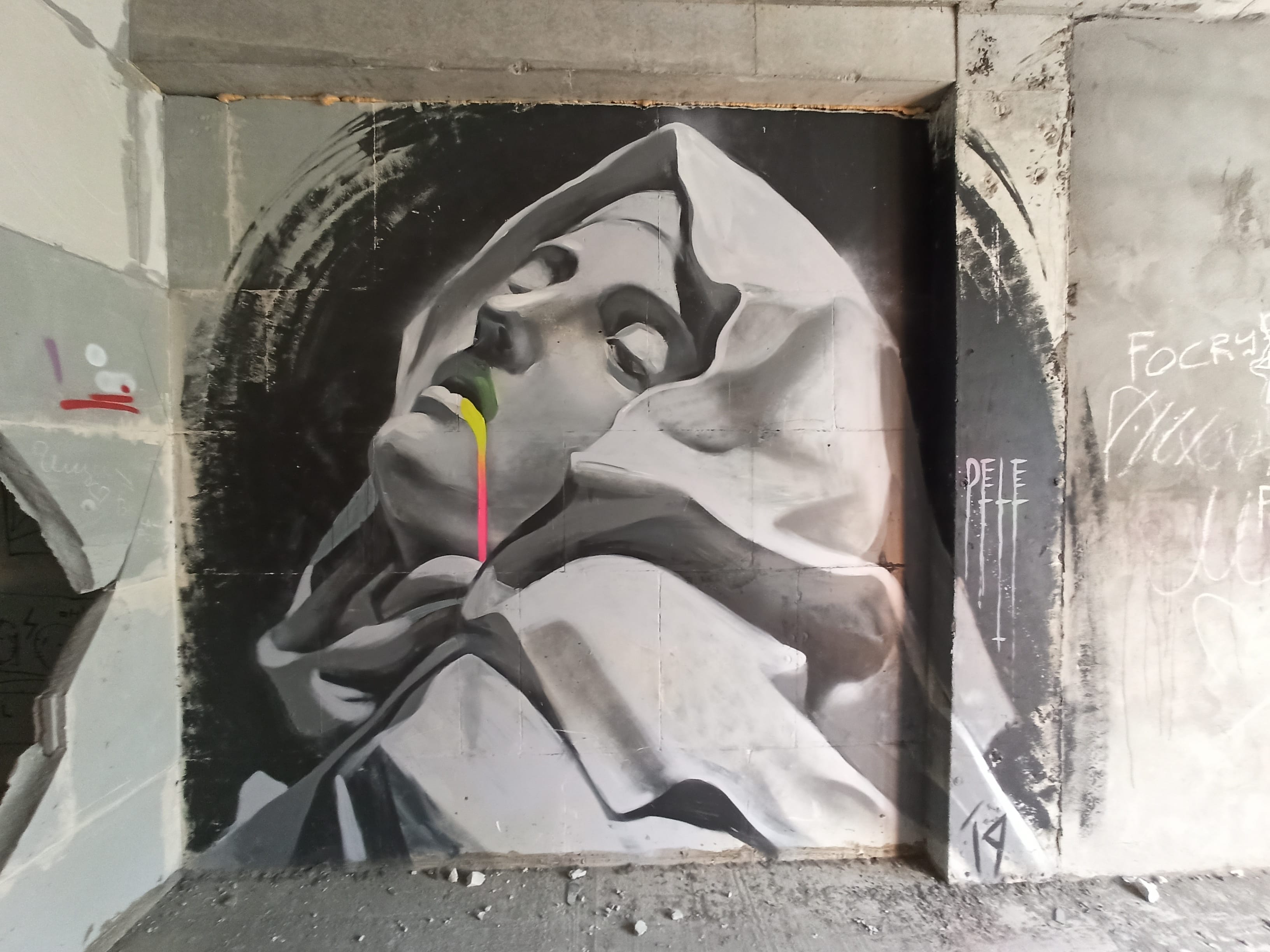L’oeuvre est de type graffiti. Vous pouvez l’admirer dans la ville de Mytishchi en Russia et plus précisément ici : abandoned building - Oktyabr'sky av. 5A, 141014 Mytishchi, Moscow district, Russia.