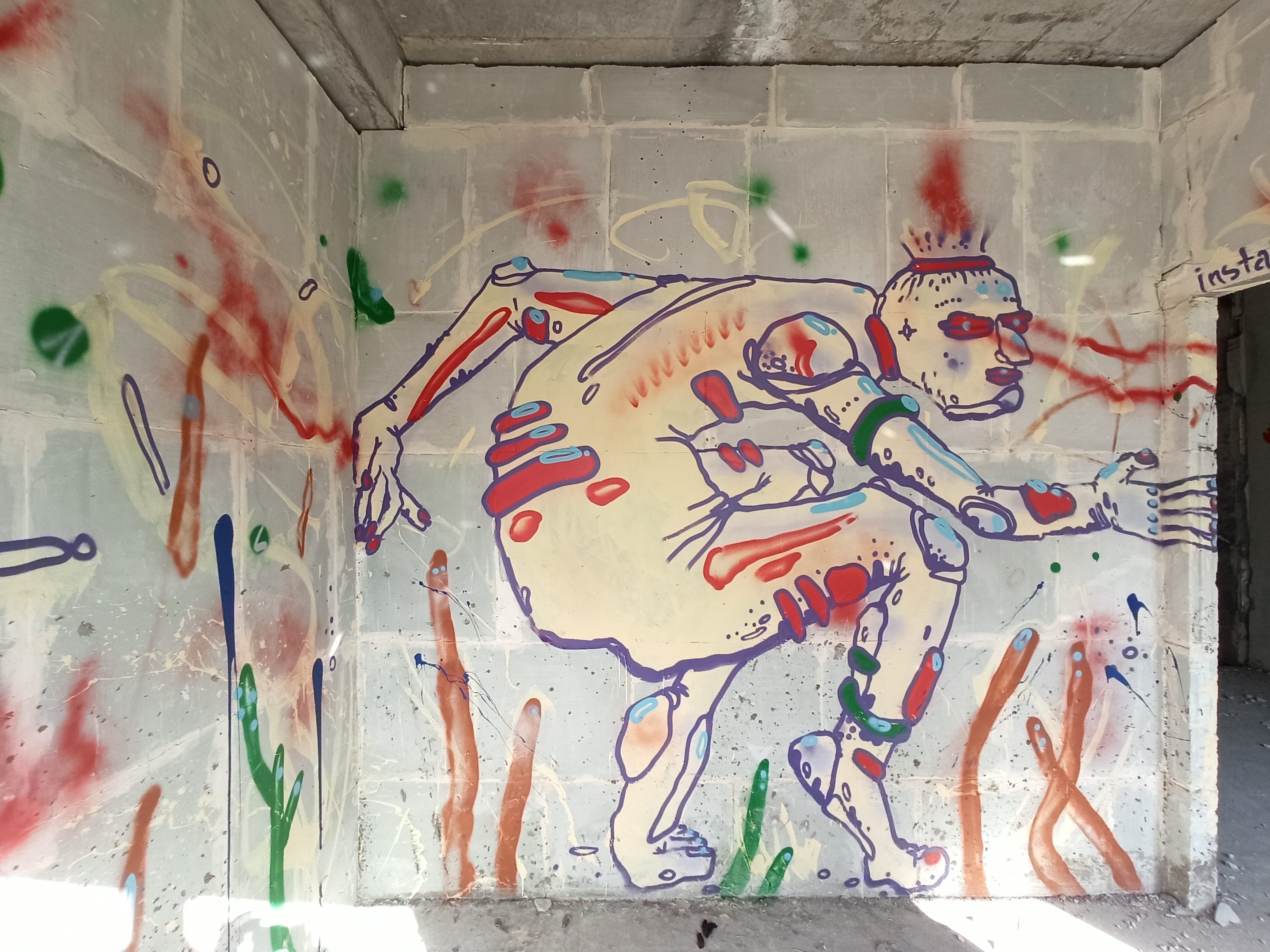 L’oeuvre est de type graffiti. Vous pouvez l’admirer dans la ville de Mytishchi en Russia et plus précisément ici : abandoned building - Oktyabr'sky av. 5A, 141014 Mytishchi, Moscow district, Russia.