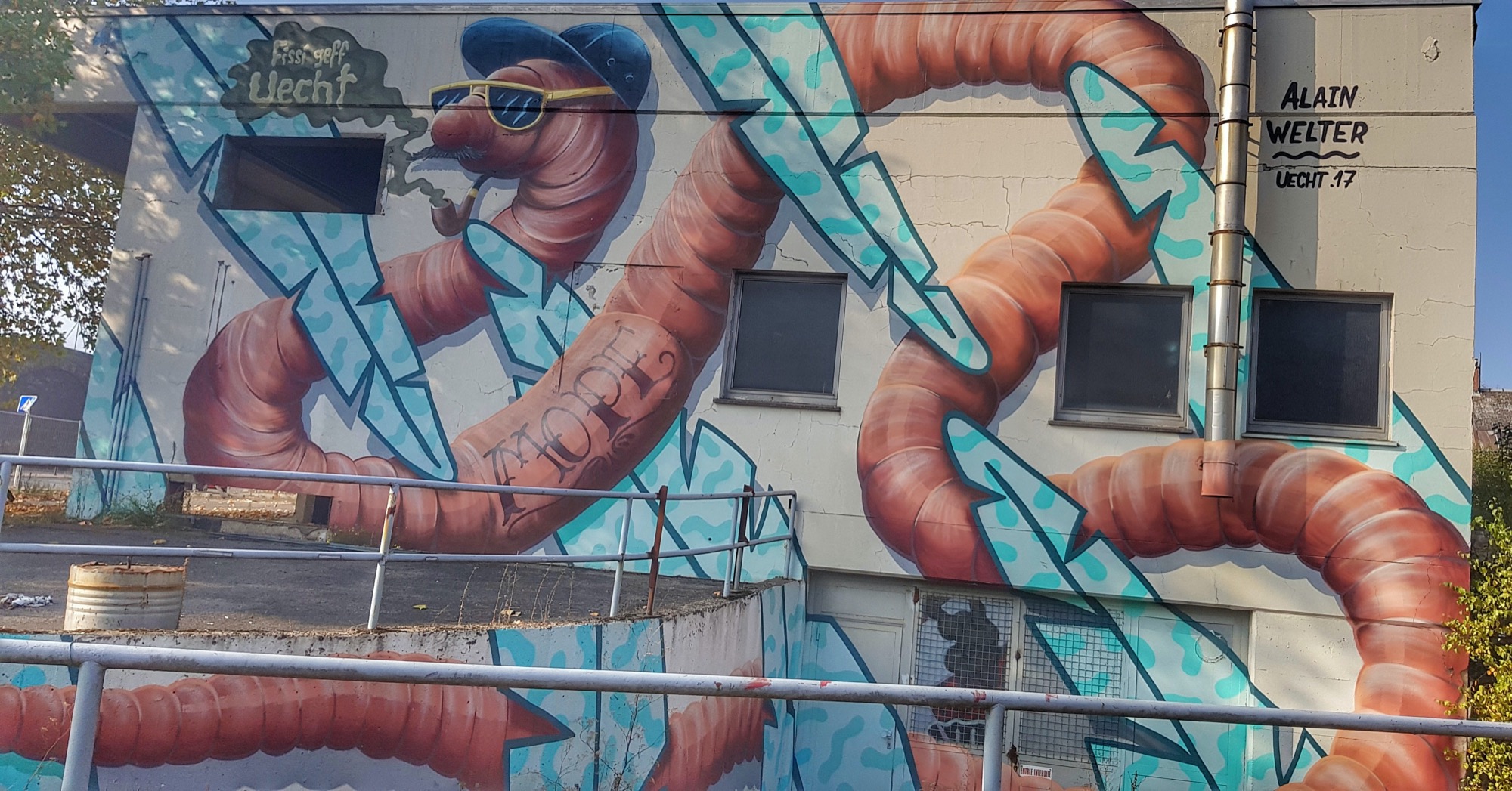 L’oeuvre Fissi gëff Uescht est de type graffiti. Vous pouvez l’admirer dans la ville de Esch/Alzette en Luxembourg et plus précisément ici : Boulevard Prince Henri.