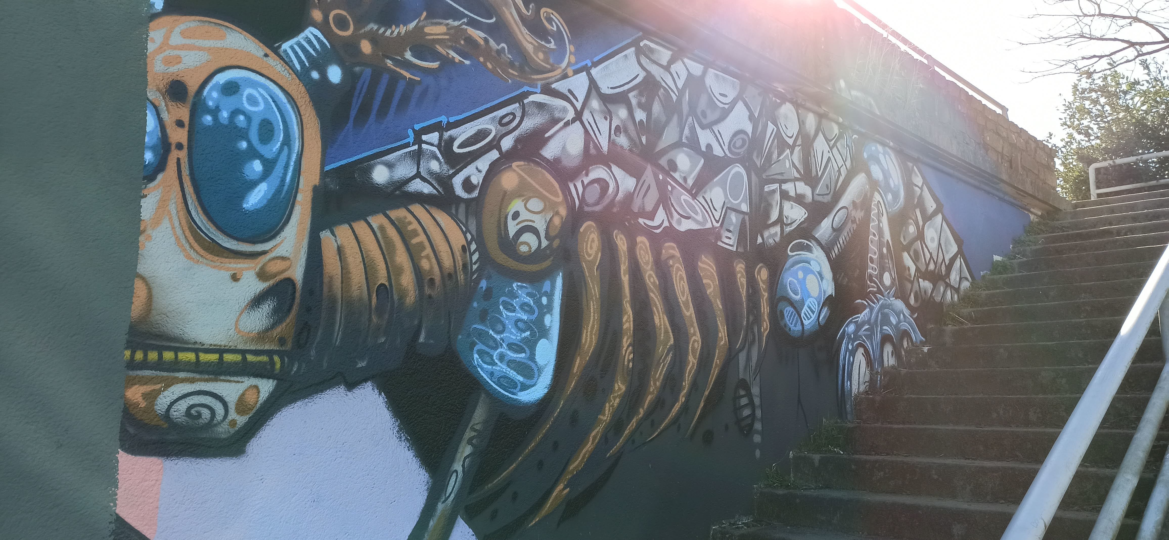 L’oeuvre est de type graffiti. Vous pouvez l’admirer dans la ville de Saint-Sébastien-sur-Loire en France et plus précisément ici : Boulevard des Pas Enchantés, 44230 Saint-Sébastien-sur-Loire, France.