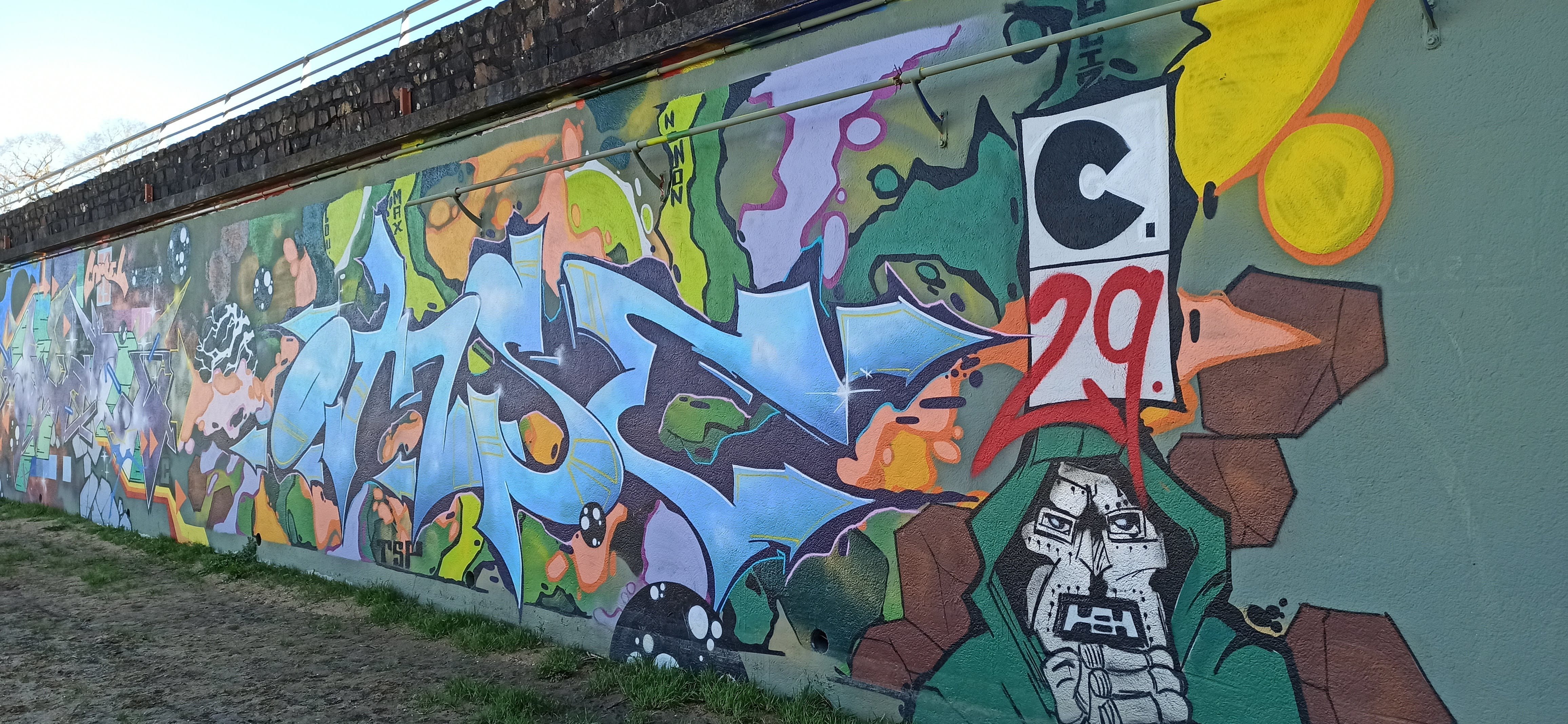 L’oeuvre est de type graffiti. Vous pouvez l’admirer dans la ville de Saint-Sébastien-sur-Loire en France et plus précisément ici : Boulevard des Pas Enchantés, 44230 Saint-Sébastien-sur-Loire, France.