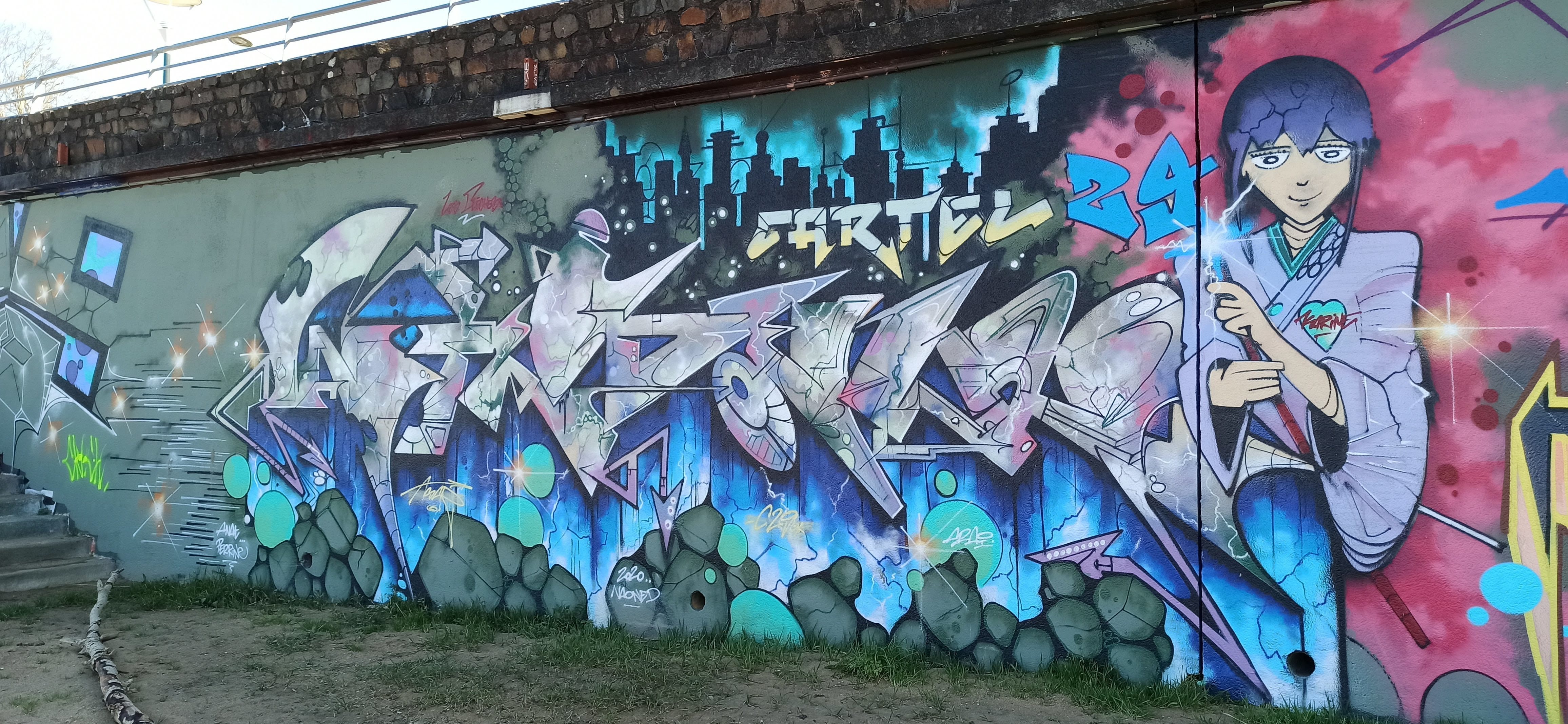 L’oeuvre est de type graffiti. Vous pouvez l’admirer dans la ville de Saint-Sébastien-sur-Loire en France et plus précisément ici : 38 Boulevard des Pas Enchantés, 44230 Saint-Sébastien-sur-Loire, France.