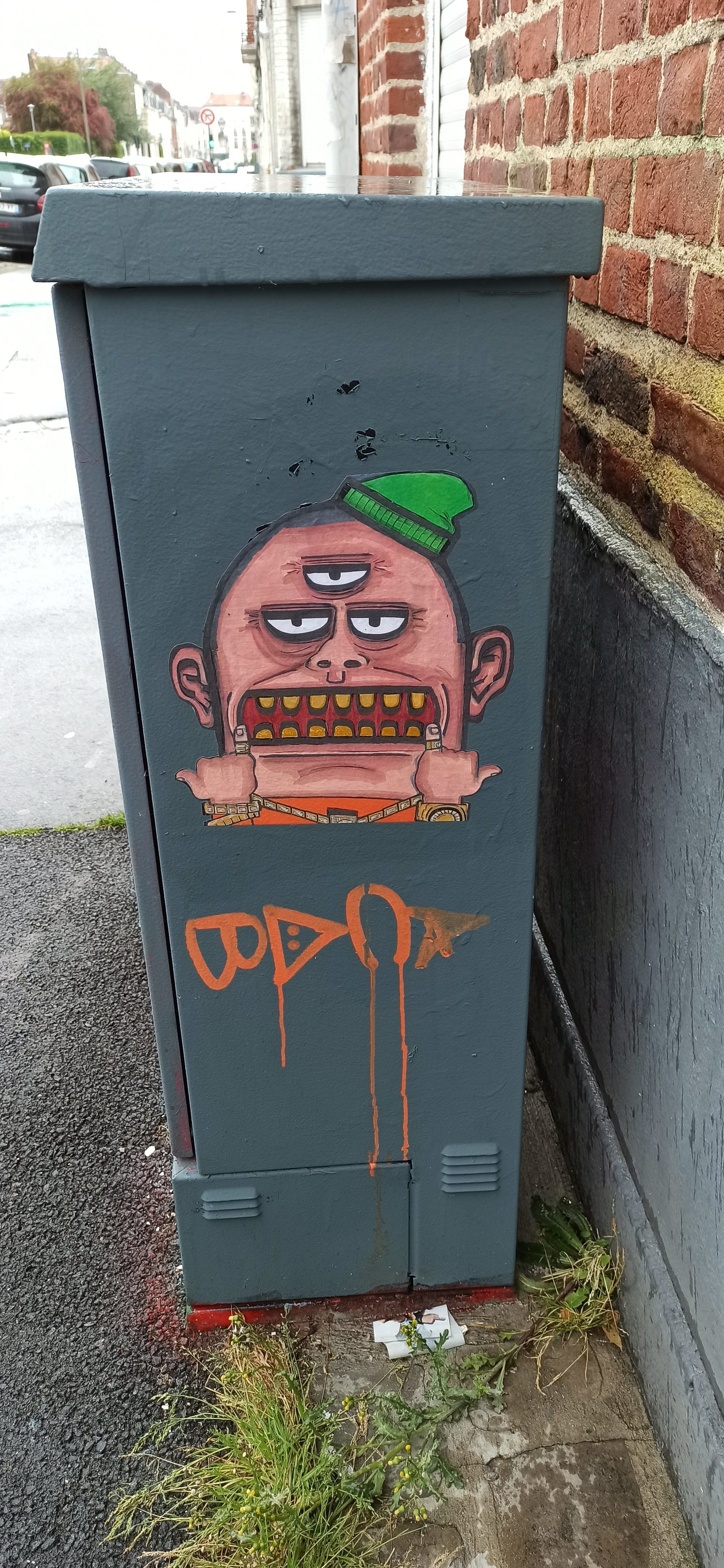 L’oeuvre est de type graffiti. Vous pouvez l’admirer dans la ville de Lille en France et plus précisément ici : 72 Rue Barthélémy Delespaul, 59000 Lille, France.