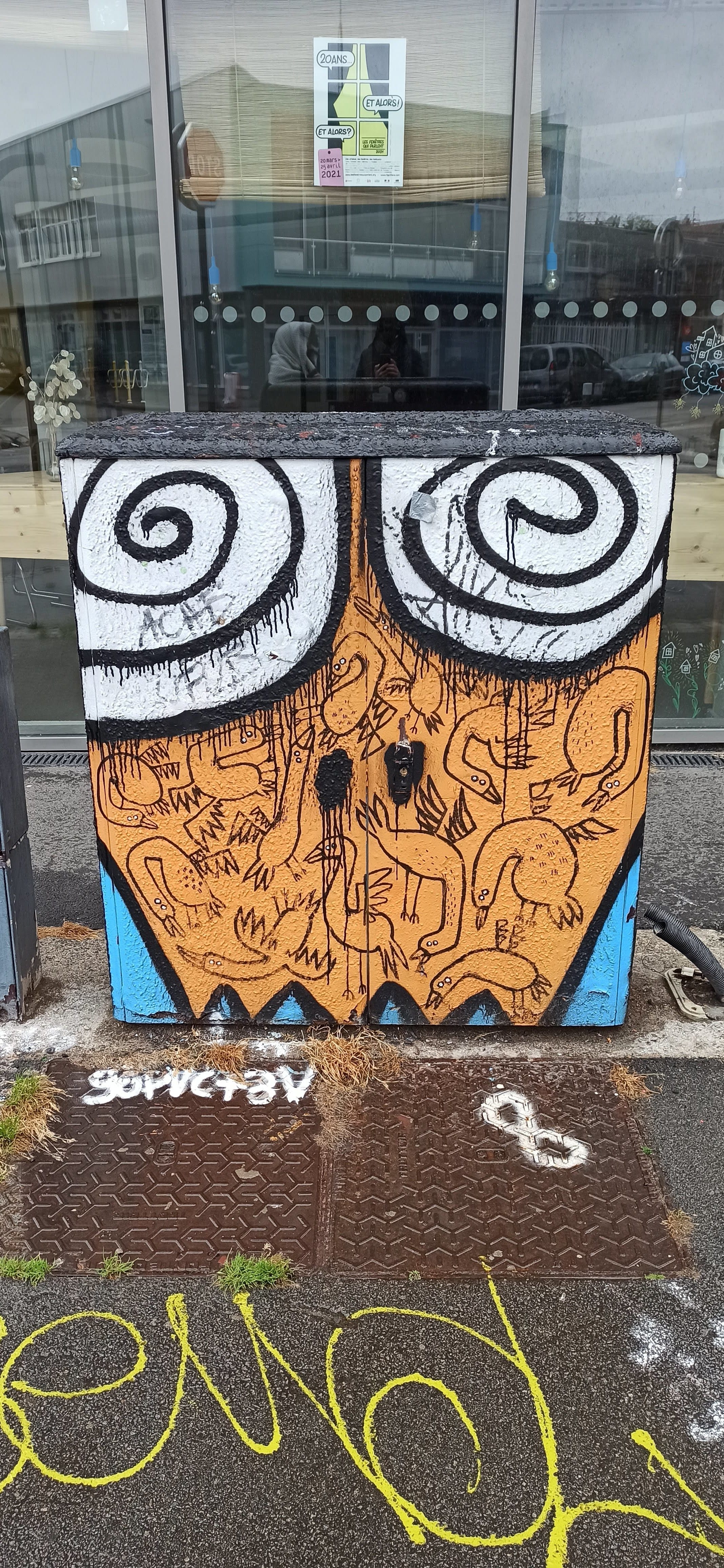 L’oeuvre est de type graffiti. Vous pouvez l’admirer dans la ville de Lille en France et plus précisément ici : 48 B Rue Barthélémy Delespaul, 59000 Lille, France.