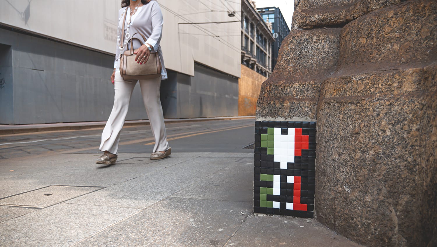 L’oeuvre est de type mosaic. Vous pouvez l’admirer dans la ville de Milano en Italy et plus précisément ici : Cordusio M1, 20121 Milano MI, Italy.