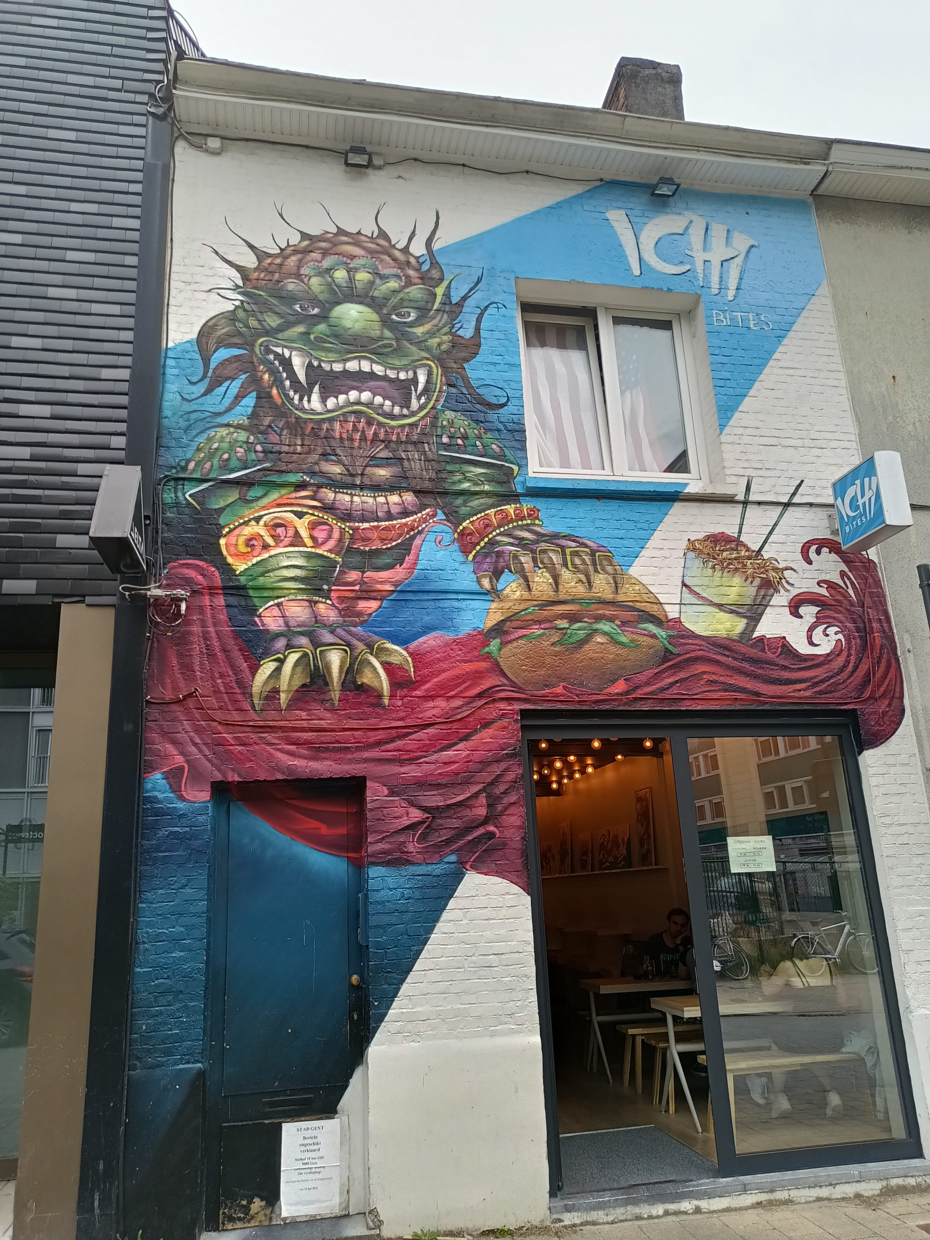L’oeuvre est de type graffiti. Vous pouvez l’admirer dans la ville de Gent en Belgium et plus précisément ici : Stalhof 11, 9000 Gent, Belgium.