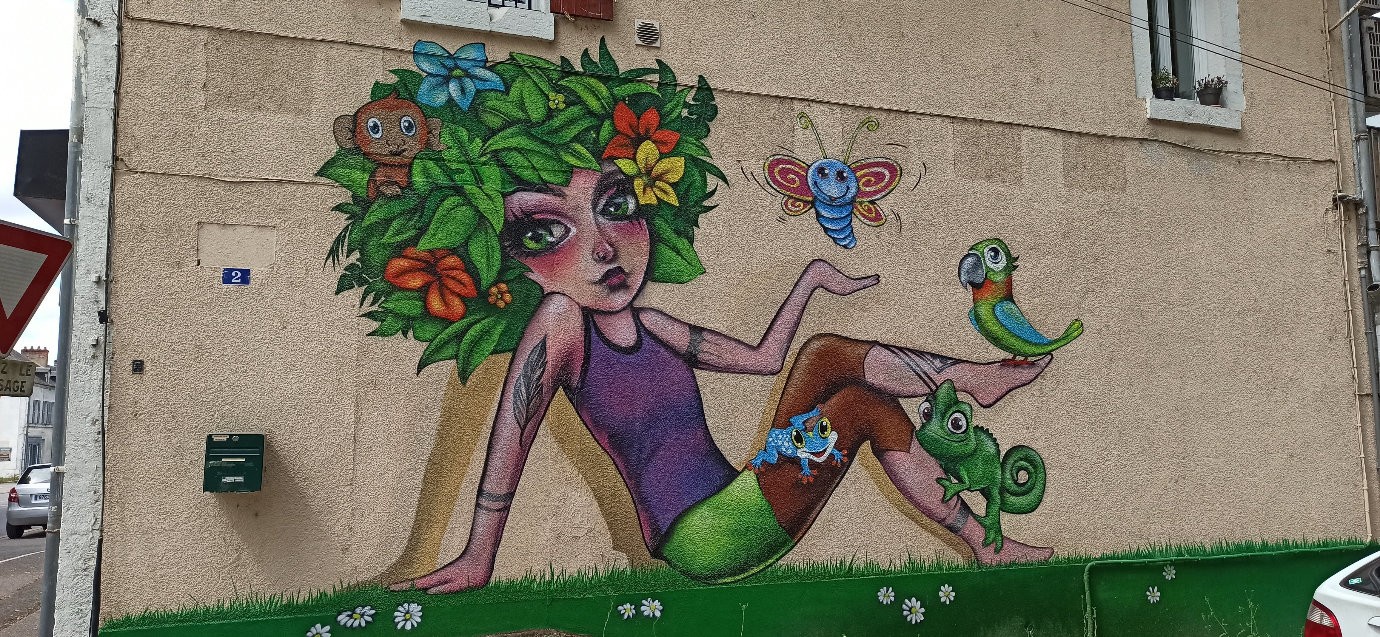 L’oeuvre est de type graffiti. Vous pouvez l’admirer dans la ville de Saint-Florent-sur-Cher en France et plus précisément ici : 2 Chem. de l'Abattoir, 18400 Saint-Florent-sur-Cher, France.