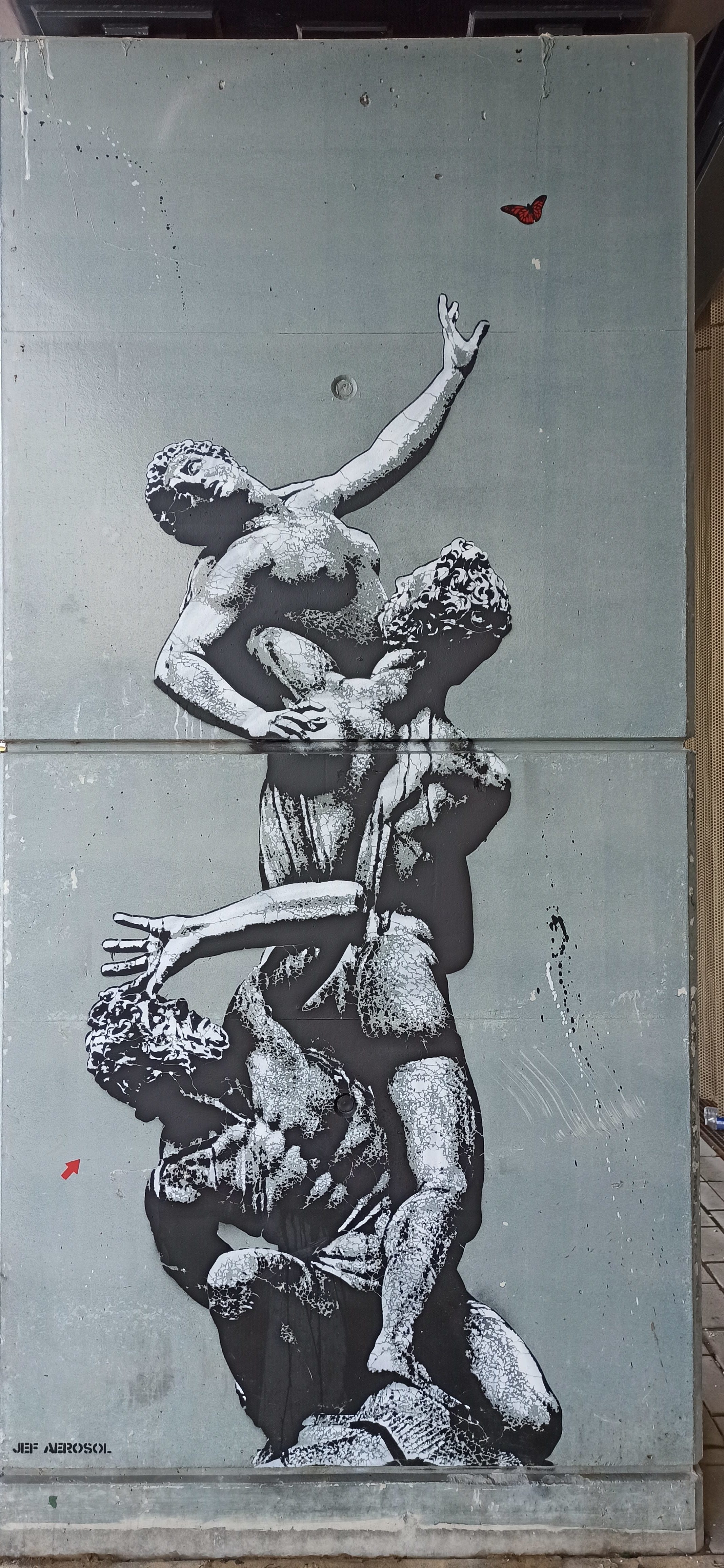Retrouvez toutes les oeuvres des artistes ayant participés à sa réalisation en cliquant sur leur nom : Jef Aérosol