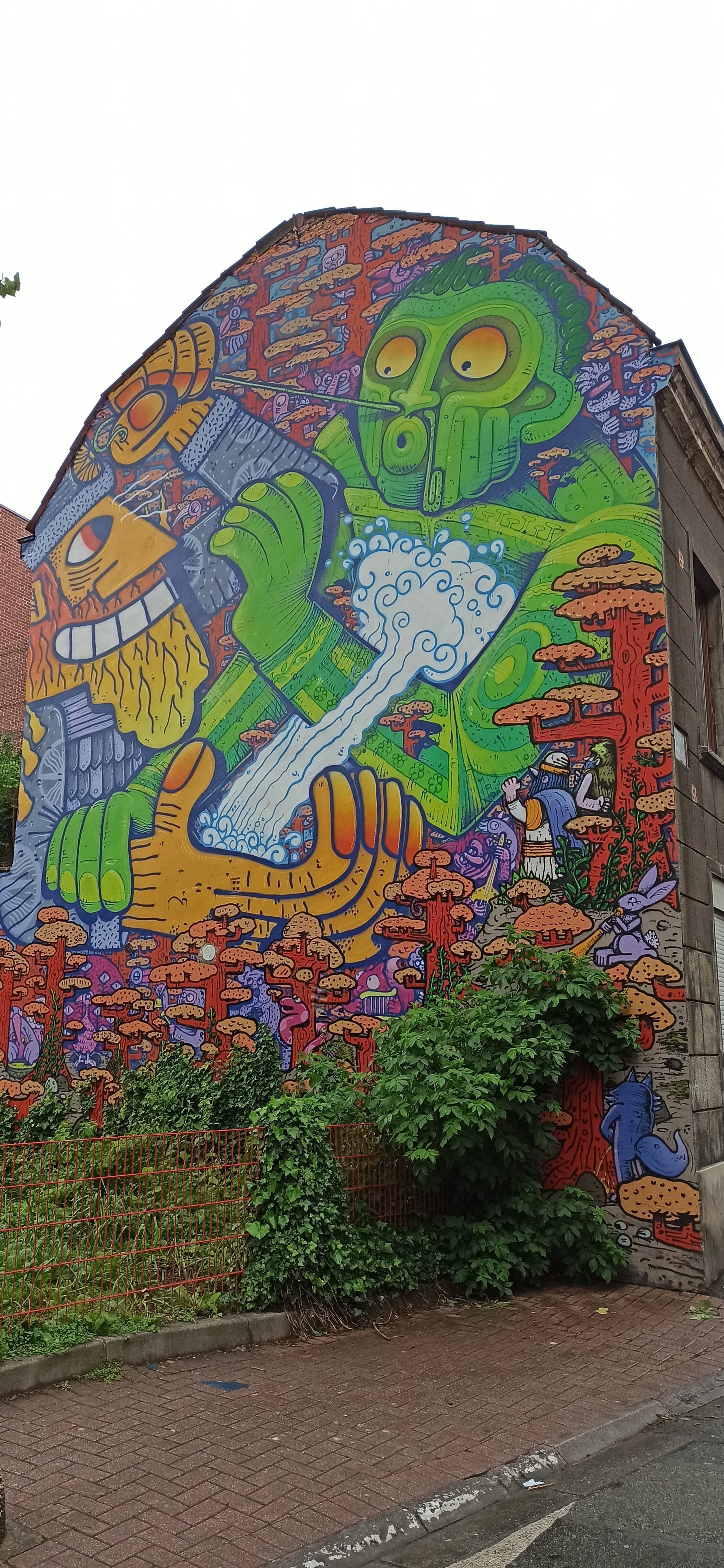 L’oeuvre est de type graffiti. Vous pouvez l’admirer dans la ville de Lille en France et plus précisément ici : 99 Rue Manuel, 59000 Lille, France.